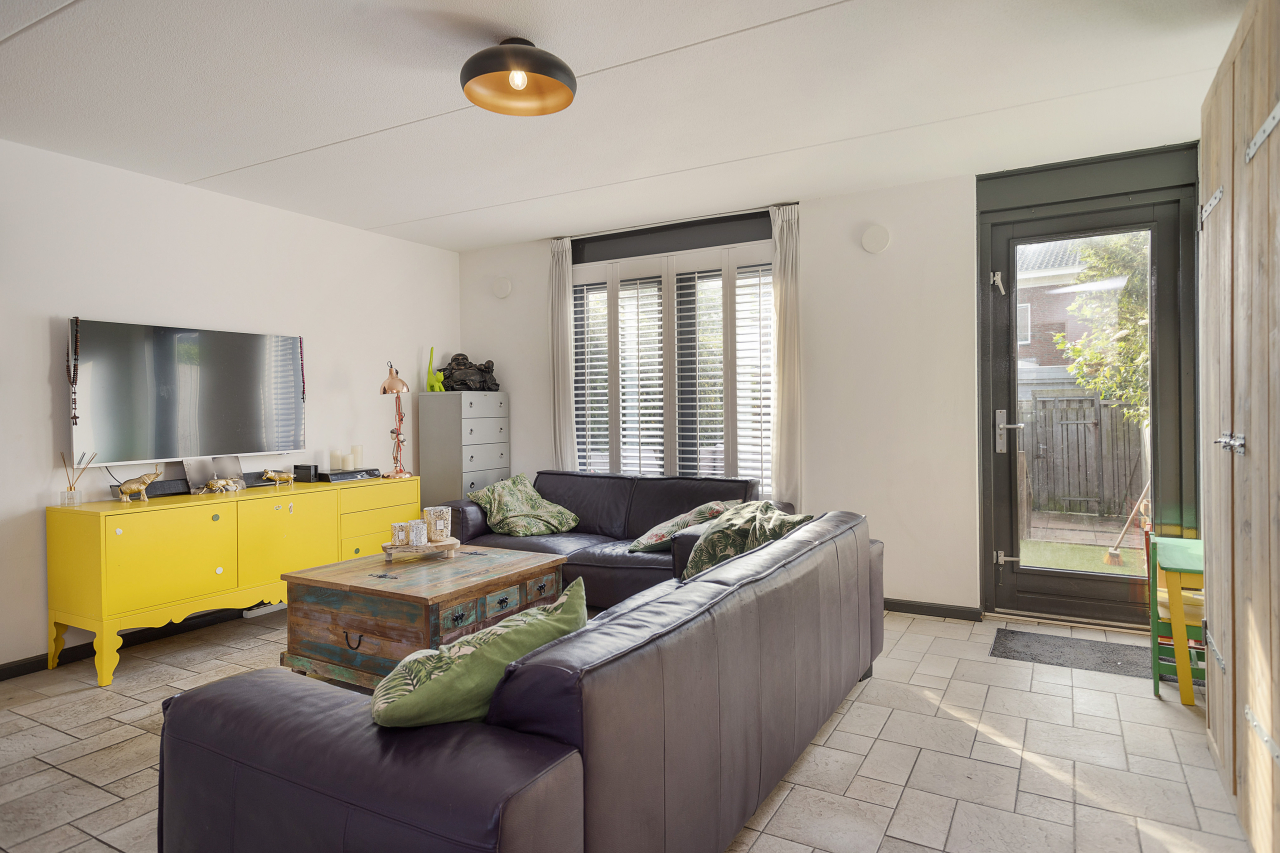 Via een loopdeur of openslaande deuren is het terras, de achtertuin met houten berging en achterom bereikbaar.