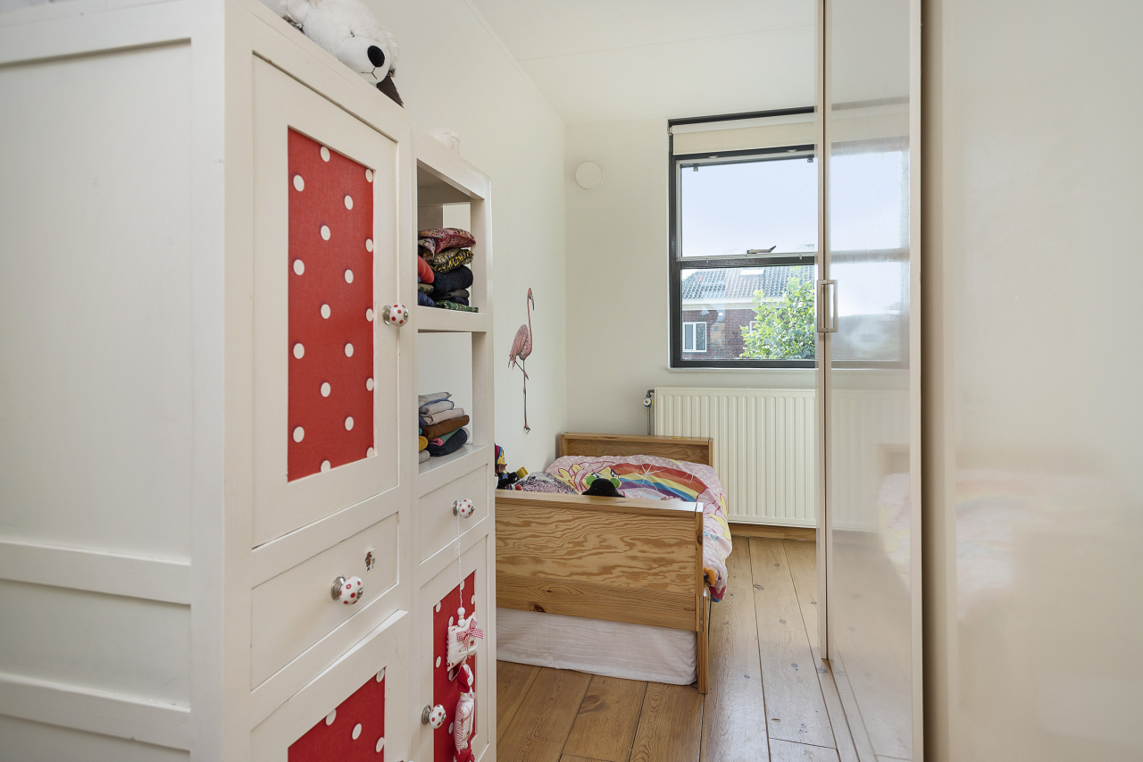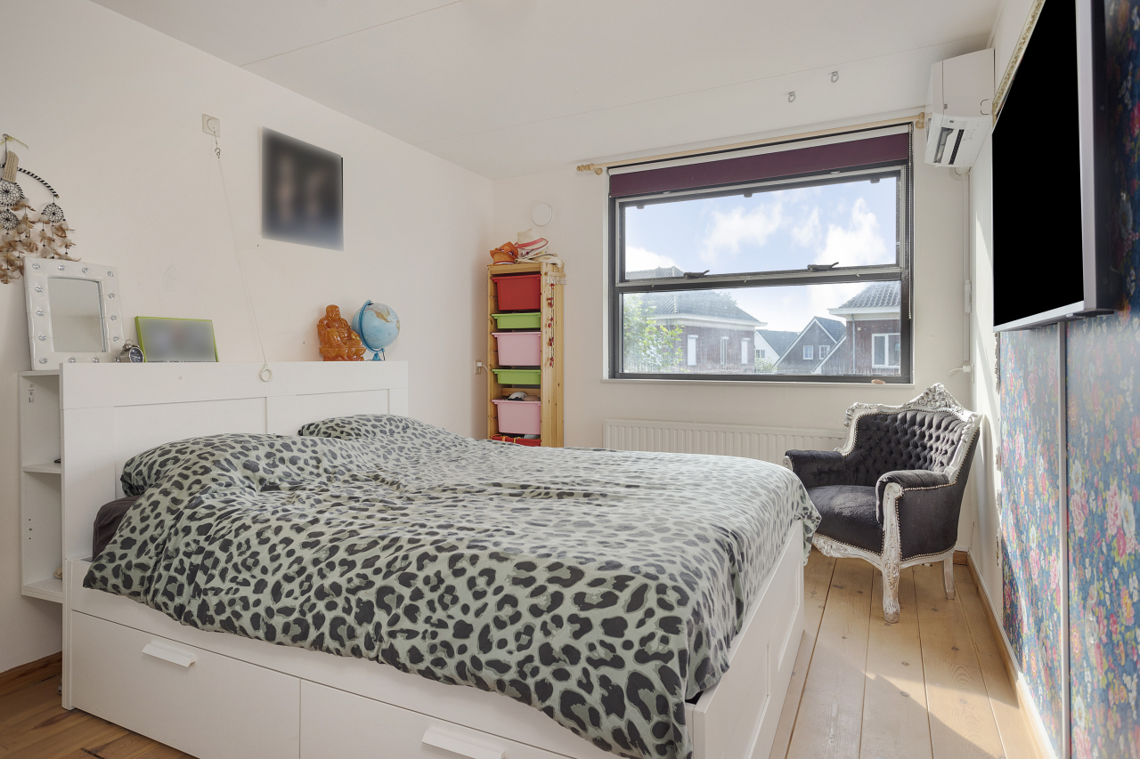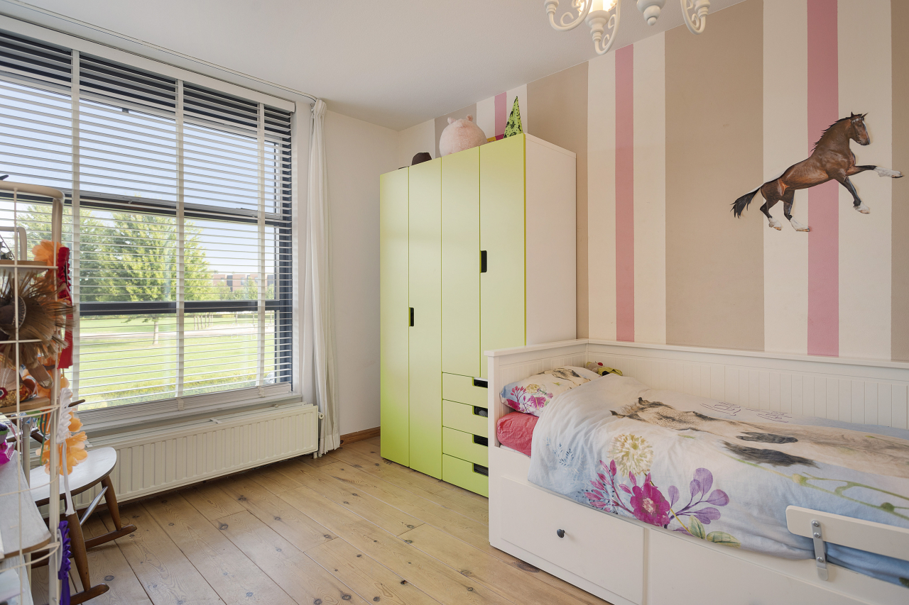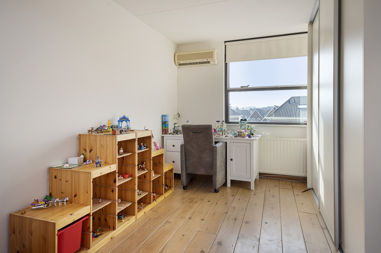 De ouderslaapkamer aan de achterzijde is voorzien van een massief houten vloer zoals de gehele verdieping en een airco. De slaapkamer ernaast heeft een grote inbouwkast.