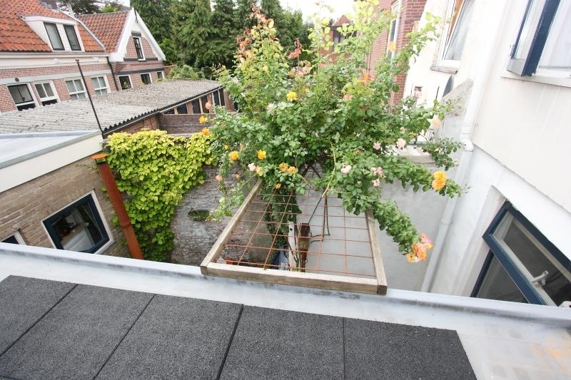 Via de deur in de ouderslaapkamer is een groot plat dak bereikbaar die momenteel wordt gebruikt als dakterras De zonnige patio achter de woning op het Zuidoosten is onderhoudsvriendelijk en bereikbaar via de keuken deur. De berging met loopdeur en raam is bijzonder praktisch als bergruimte voor o.a de fietsen. De achterdeur van de berging is de achterom naar de Sophiastraat.