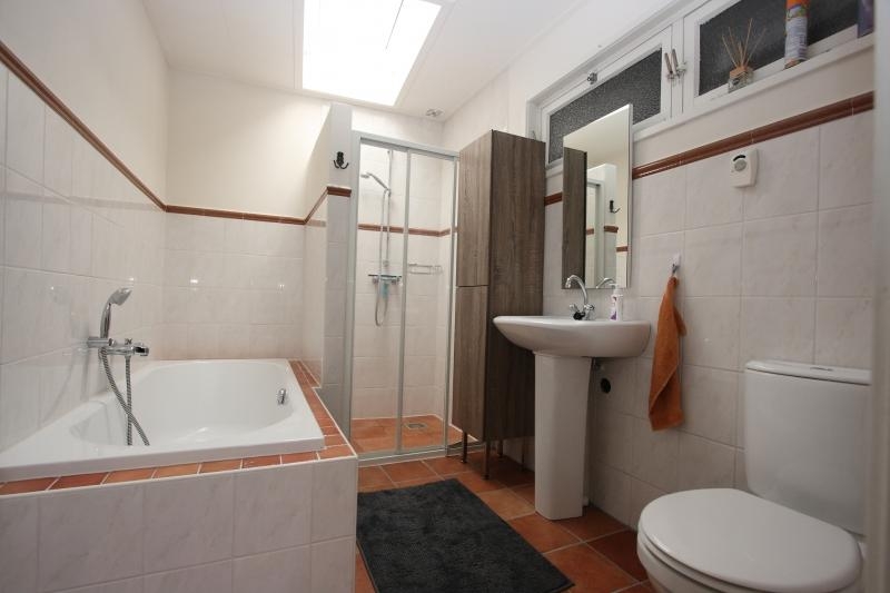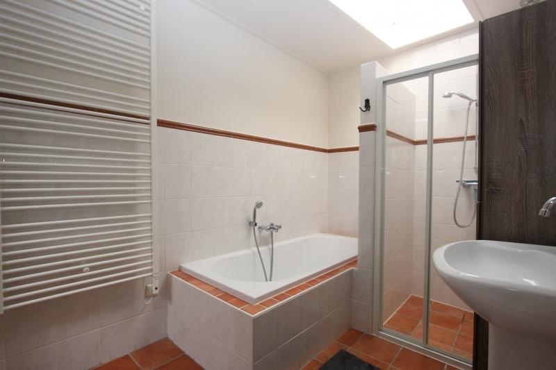 De complete, volledig betegelde badkamer (tevens met lichtkoepel) is voorzien van een ligbad, aparte inloop douche, wastafel, toilet en elektrische designradiator.