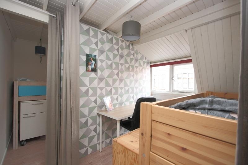 De ruime ouderslaapkamer aan de achterzijde heeft diverse ramen en een deur naar het platte dak De slaapkamer is voorzien van een gaskachel en tevens lichte laminaatvloer. Door een aantal kasten is een overloop gecreeerd. Hier is een luik naar de grote bergzolder.