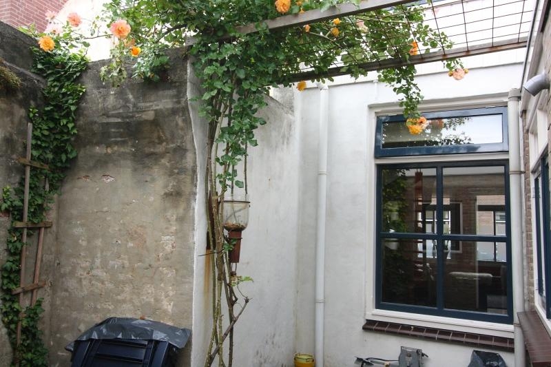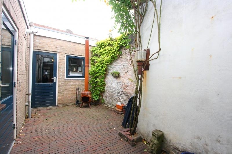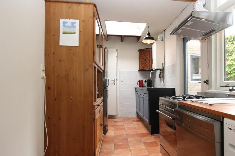 Er is een deur naar de tuin en aan de achterzijde een lichtkoepel en deur naar de badkamer.