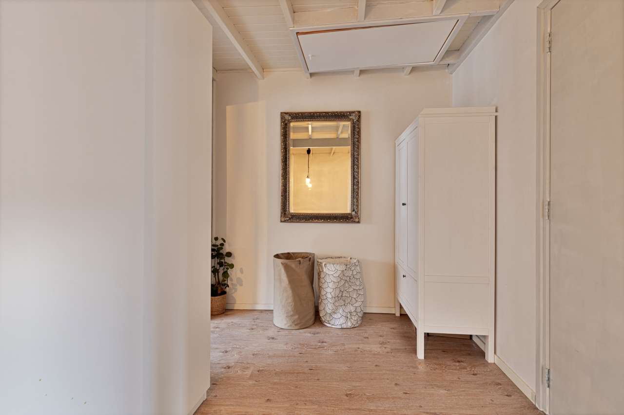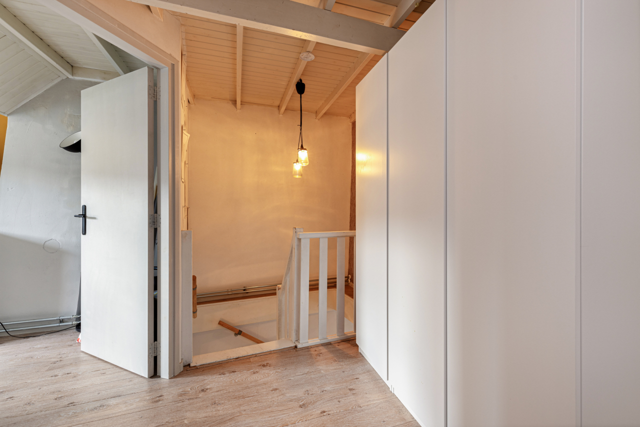 Op de overloop is een luik met vlizotrap naar de zolderverdieping met veel extra bergruimte.