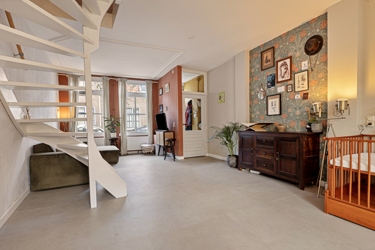 De woning ligt aan een straat met karakteristieke stadspanden met beschermd stadgezicht. Vlakbij de winkels, de Markt maar ook de rivier de Waal met uiterwaarden. Via de hal met garderobe en meterkast is de ruime woonkamer bereikbaar.