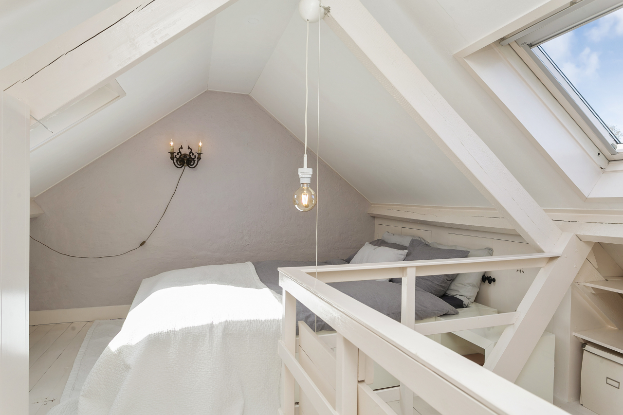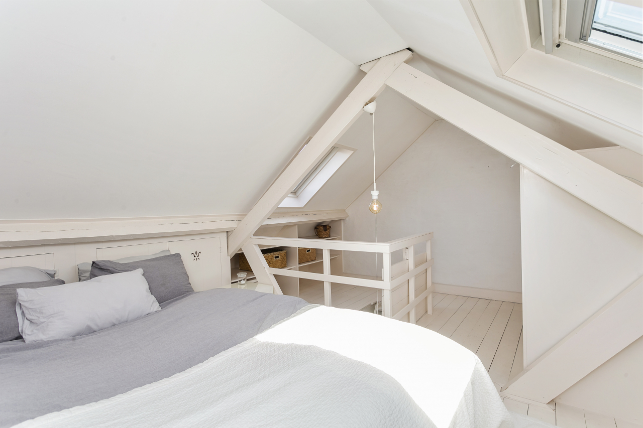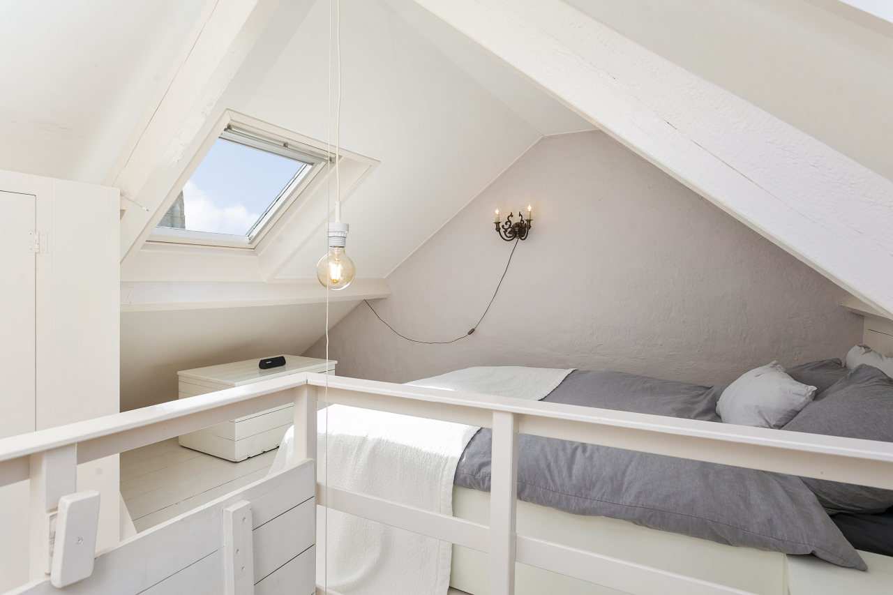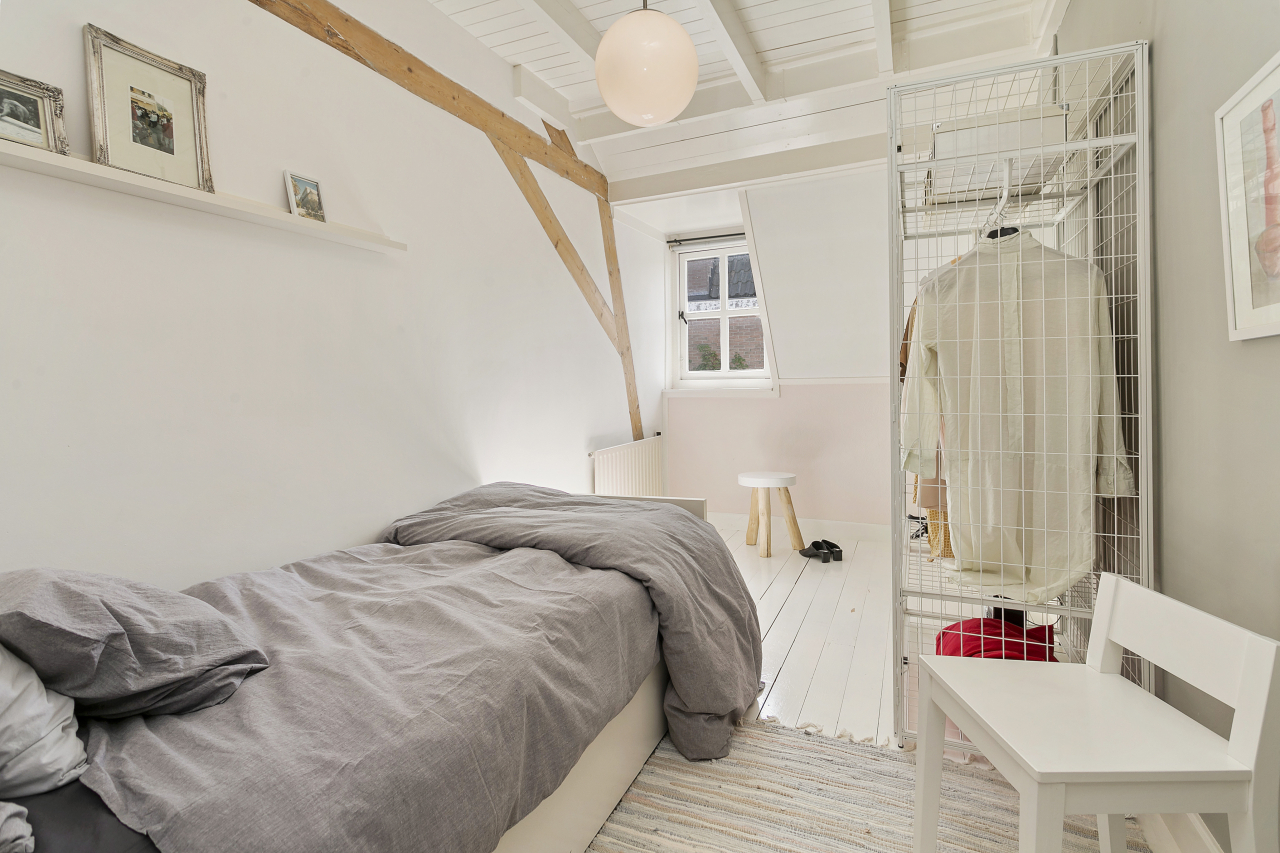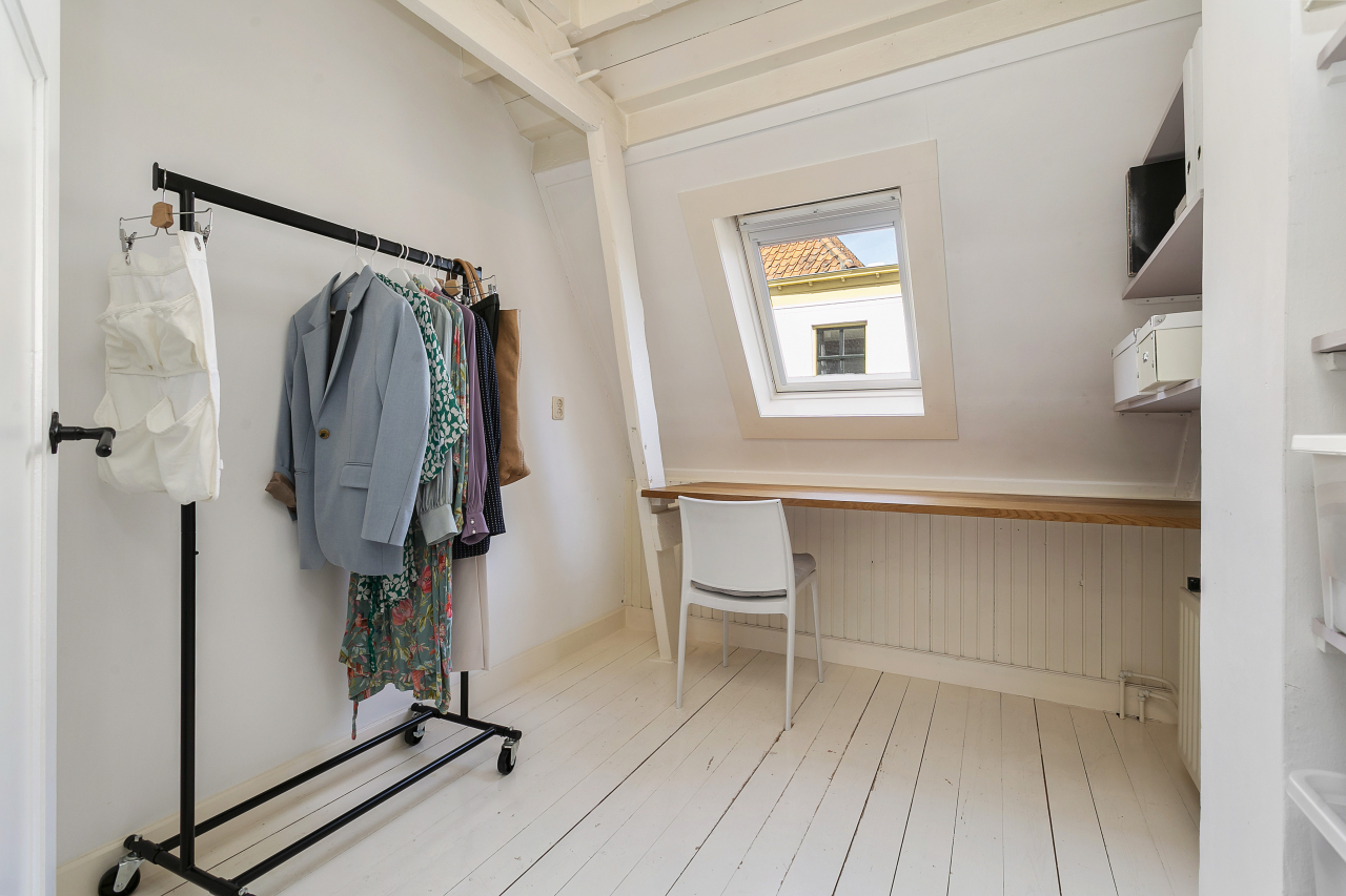 Aan de voorzijde ligt de 1e slaapkamer met dakraam en is nu in gebruik als studeerkamer. Aan de achterzijde de 2e slaapkamer met fraaie balken in het zicht , tevens een wit gelakte houten vloer en dakkapel met raam met roede verdeling en fraai zicht op de Sint-Maartenstoren.