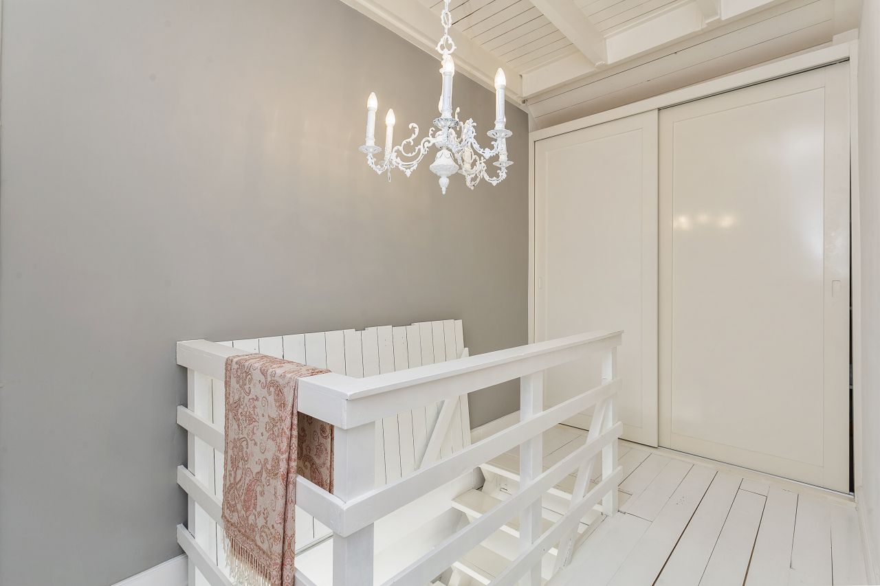 Via de trap in de woonkamer is de overloop op de 1e verdieping bereikbaar met grote inbouw kast met schuifdeuren.
