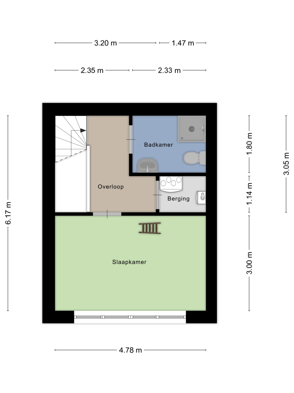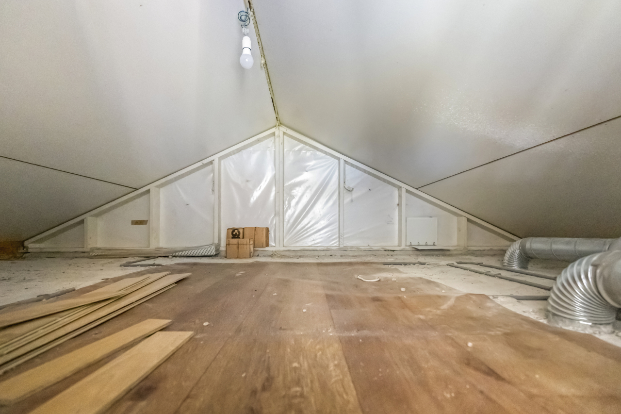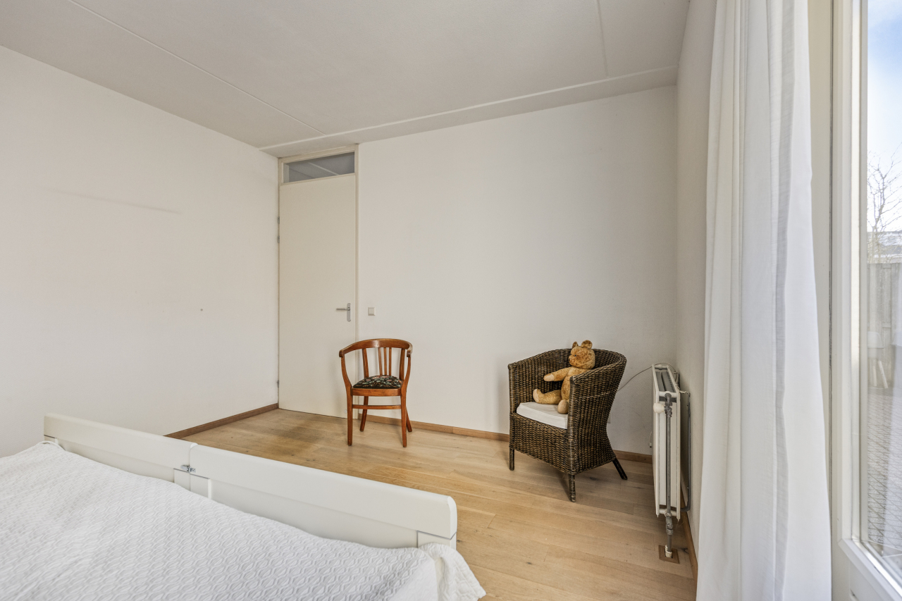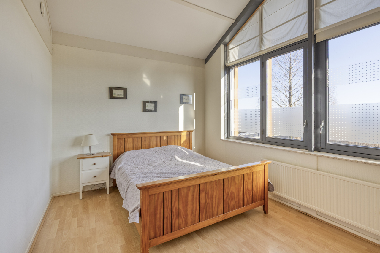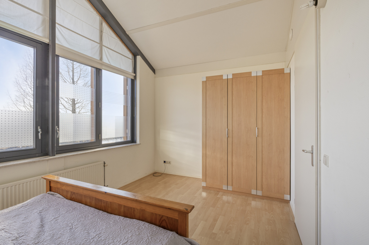 Via een luik en losse trap is op de slaapkamer de grote bergzolder bereikbaar. Ook vanuit de slaapkamer aan de voorzijde is prachtig zicht over Parkeiland.