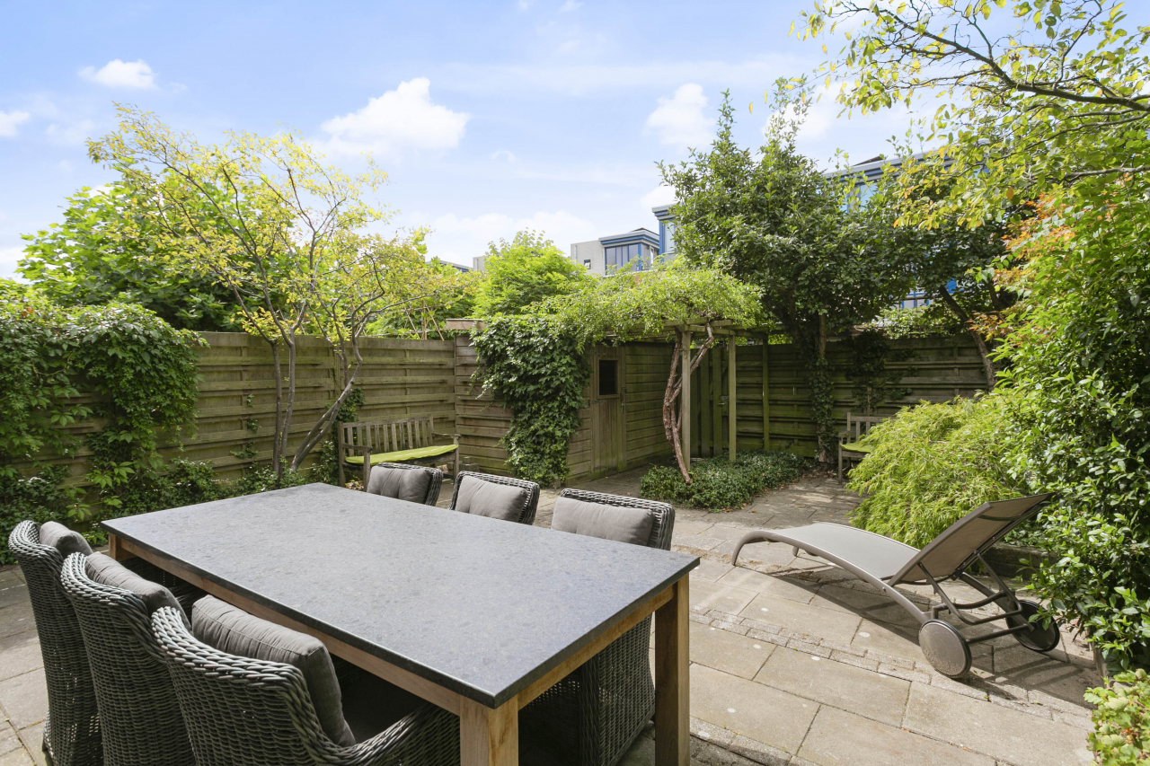 Er is een groot terras bij de openslaande deuren en tuindeur. Achterin de tuin staat een houten berging en is een achterom. De woning ligt vlakbij scholen, Het Esplanadepark, een speeltuin en kinderboerderij. Komt u kijken? U bent welkom!