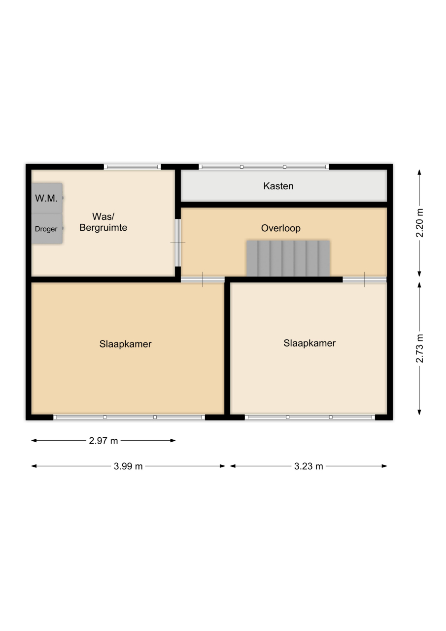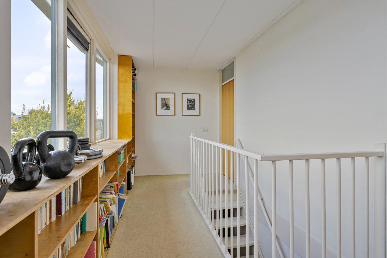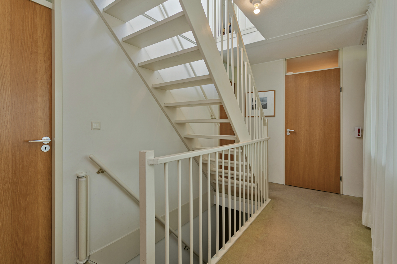 De 2e verdieping is ook bereikbaar met een vaste trap en hier bevinden zich aan de overloop 2 slaapkamers en de praktische witgoedruimte met de Nefit CV HR ketel en mechanische ventilatieunit. Op de overloop is extra kastruimte onder de ramen.