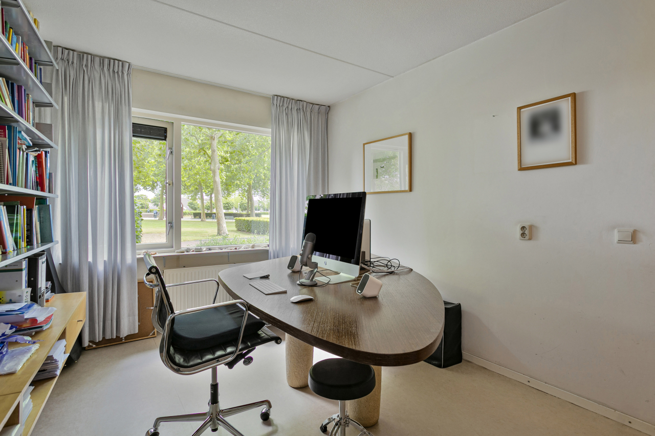 Aan de voorzijde is tijdens de bouw van de woning een werk/kantoorruimte gerealiseerd in de ruimte die ook kan dienen als garage. Deze ruimte heeft een grote inbouwkast. Er ligt een lichte marmoleum vloer.