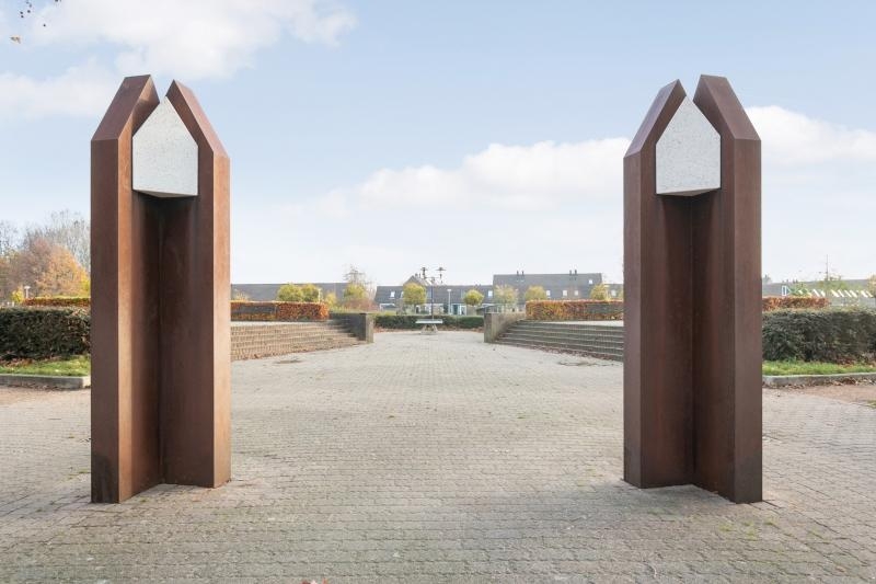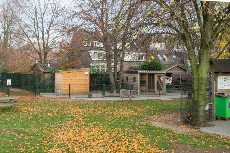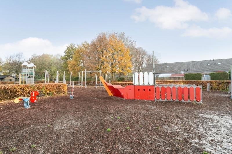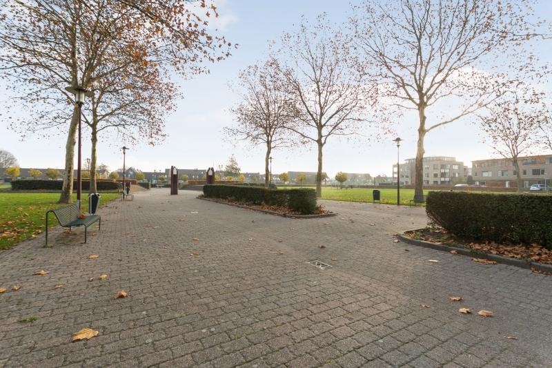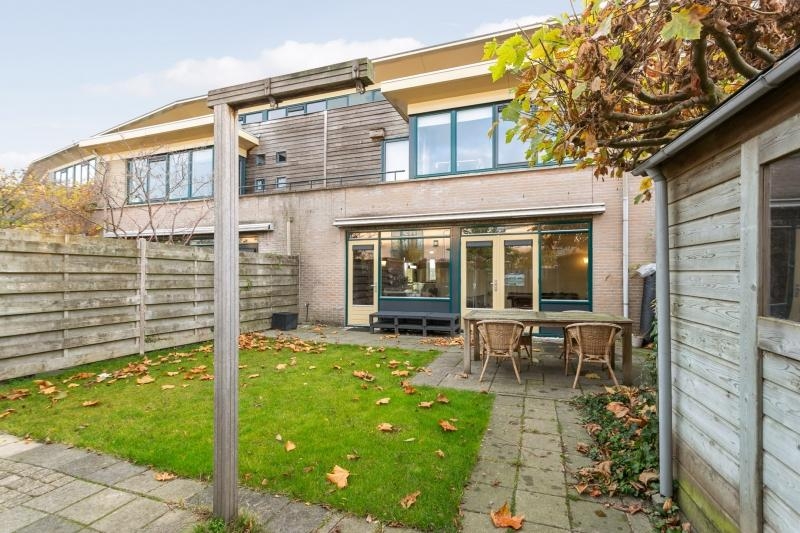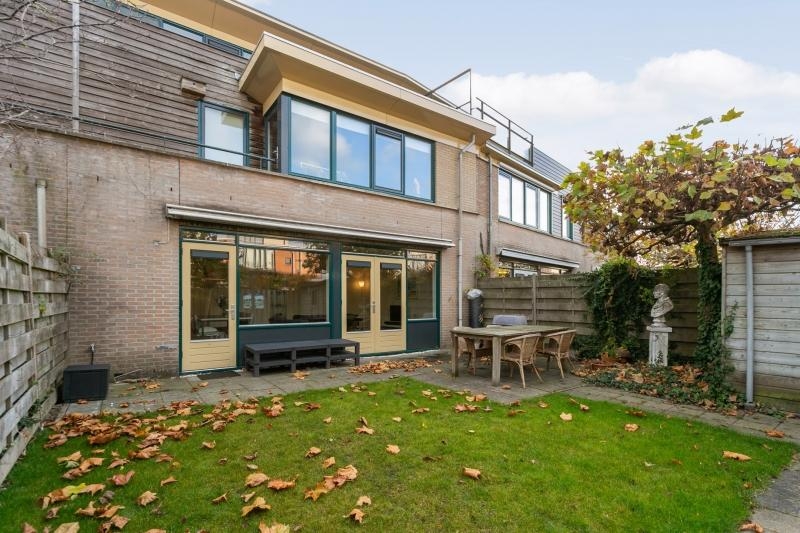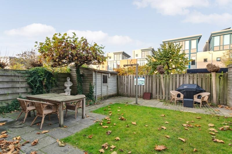 Achter de woning ligt de zonnige tuin op het Westen voorzien van een gazon, sierbestrating, border met planten en sierbomen. Er is een terras bij de openslaande deuren en achter in de tuin. Hier staat tevens een houten berging. De woning ligt vlakbij scholen, Het Esplanade park, een speeltuin en kinderboerderij.