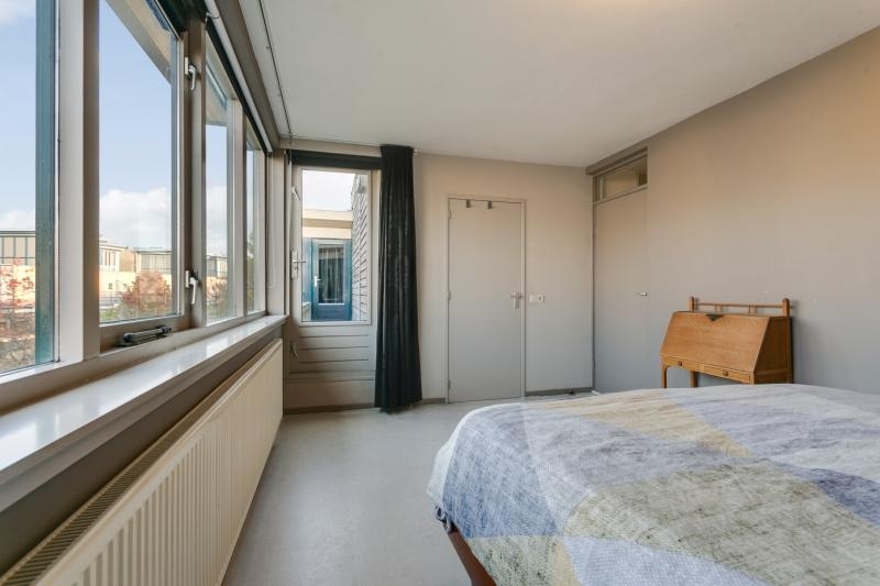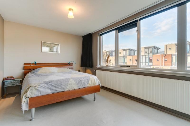 Aan de achterzijde ligt de ouderslaapkamer tevens met grote ramen en met een echte inloopkast. Er is een deur naar het balkon. Deze uitbouw of opbouw is in 2000 gerealiseerd door de vorige bewoners.
