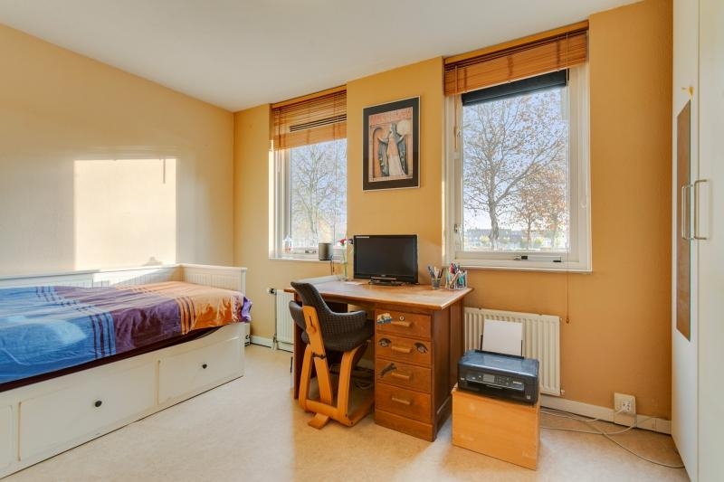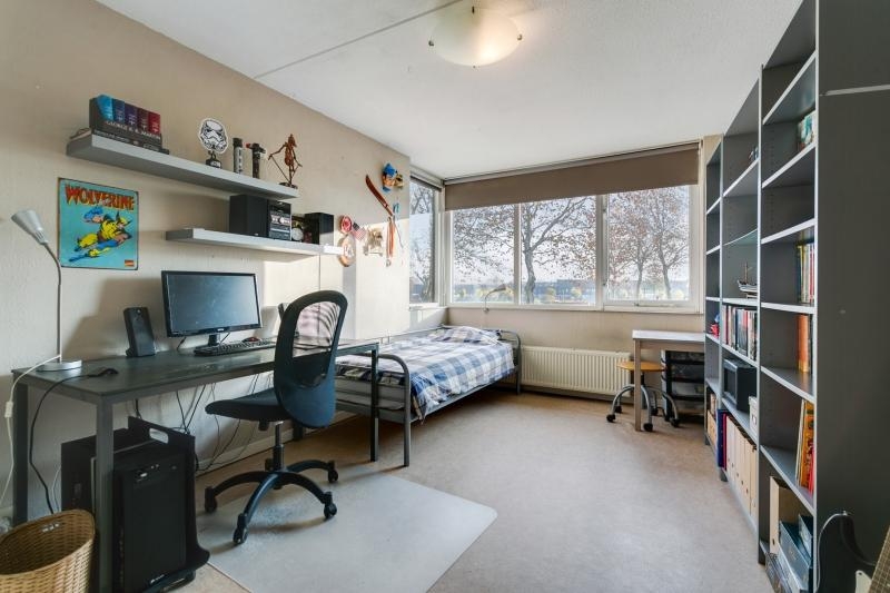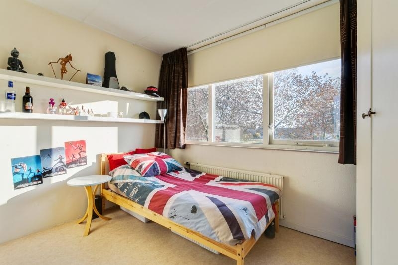 Aan de voorzijde liggen 2 ruime slaapkamers die zicht hebben op de autoluwe straat en het park. Beide kamers zijn voorzien van grote ramen en een vinylvloer.