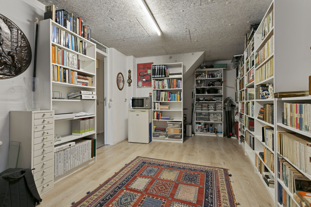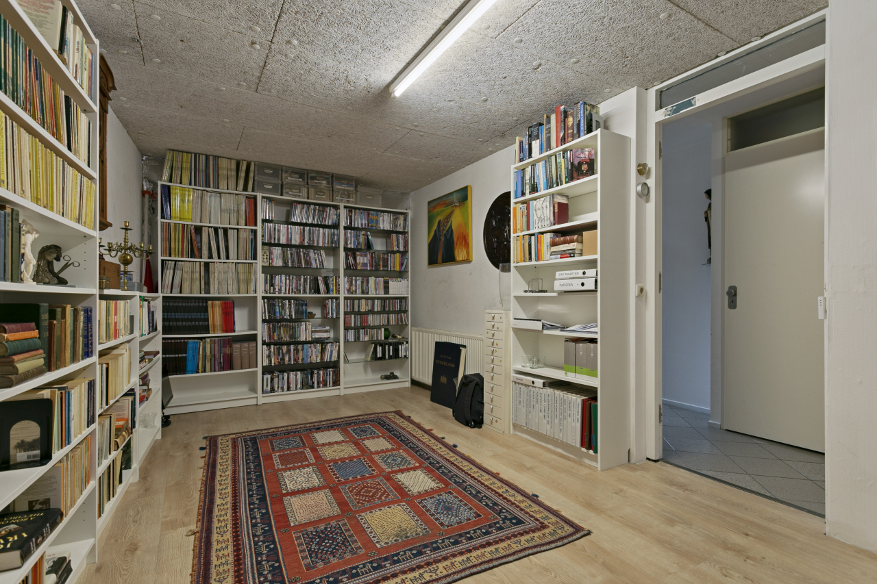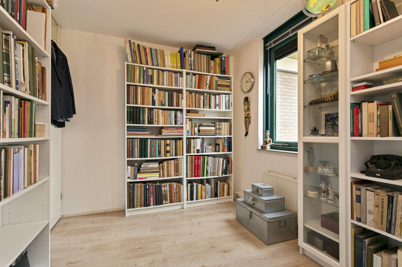 Aan de voorzijde is tijdens de bouw van de woning een garage gerealiseerd in de ruimte die ook als slaapkamer of kantoor kan dienen. Deze ruimte is voorzien van een laminaat vloer.