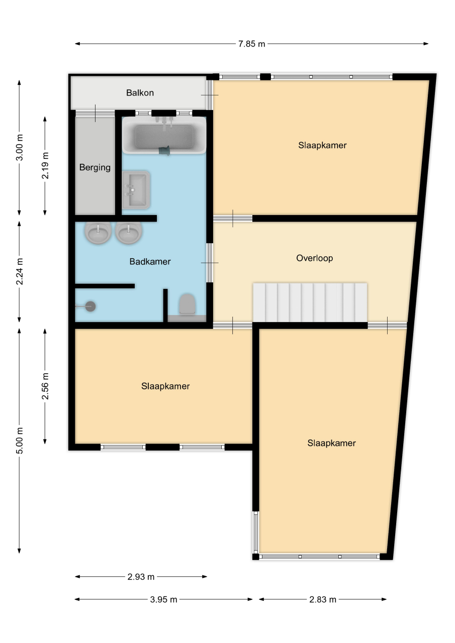 Via een vaste trap is de overloop bereikbaar op de 1e verdieping met 3 slaapkamers en de complete badkamer. Aan de achterzijde is een balkon met extra berging.