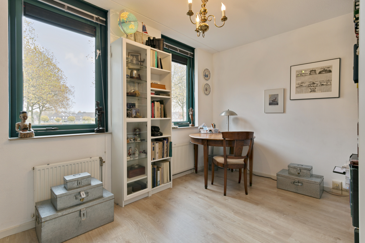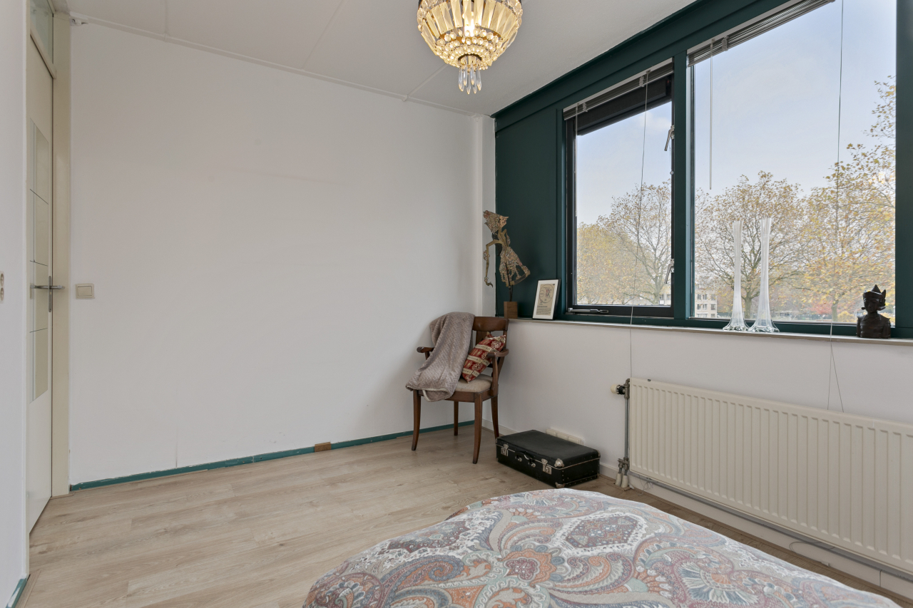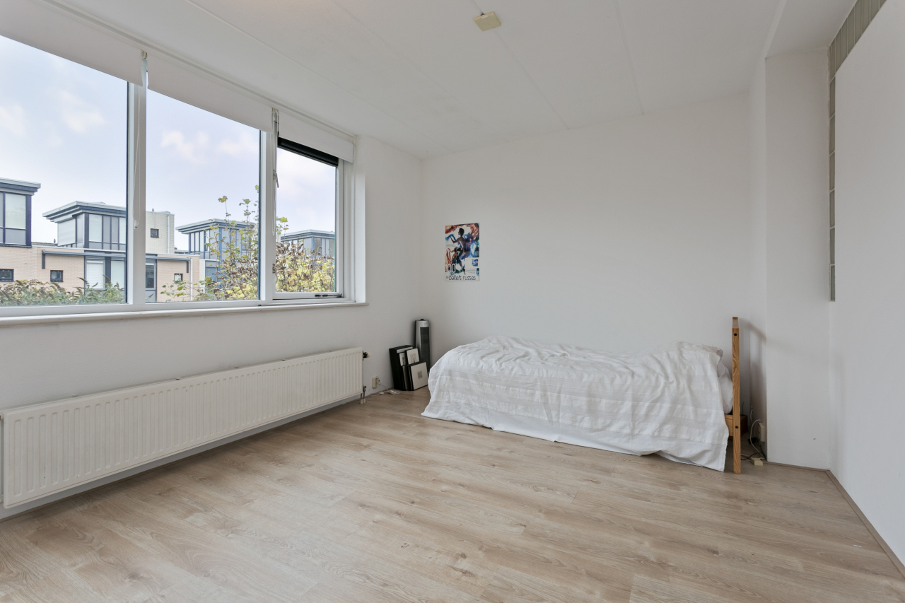 Aan de voorzijde liggen 2 ruime slaapkamers die zicht hebben op de autoluwe straat en het park. Beide kamers zijn voorzien van grote ramen en een laminaatvloer.