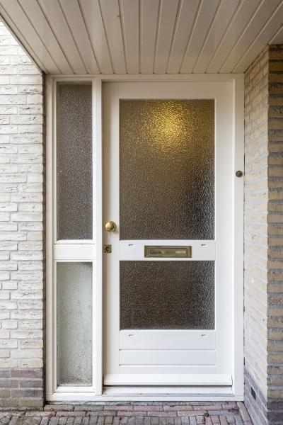 De overdekte entree is aan de zijkant van de woning. De naast gelegen garage met eigen oprit is toegankelijk via een kanteldeur en loopdeur aan de voorzijde en een loopdeur aan de tuinzijde. In de garage ligt een lichte tegelvloer.