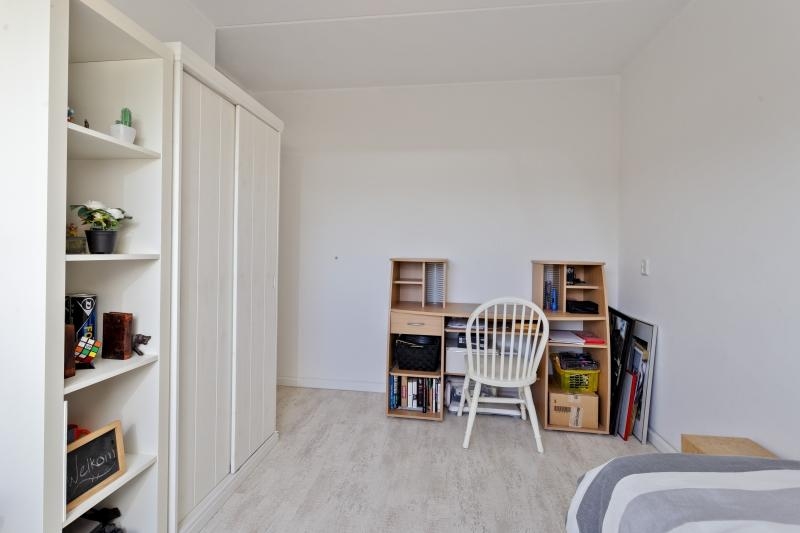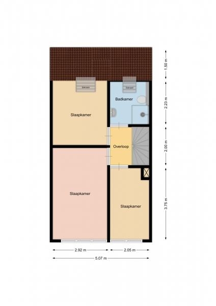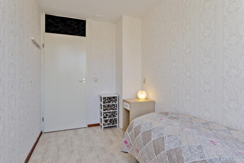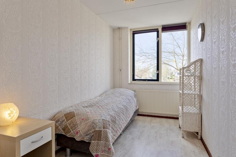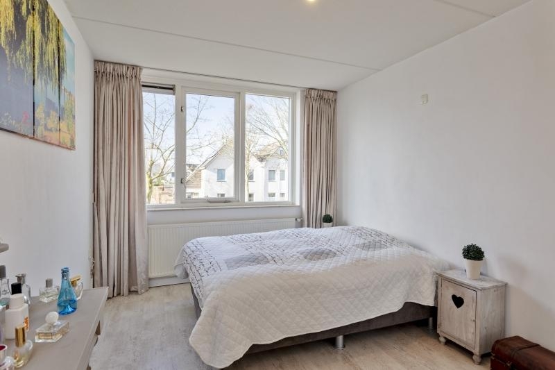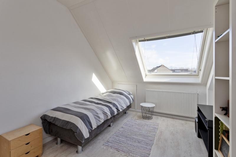 Aan de voorzijde ligt de 2e slaapkamer, tevens met laminaatvloer. Aan de achterzijde ligt de 3e slaapkamer met een groot Veluxraam, opbergruimte onder de schuine kap en een laminaatvloer
