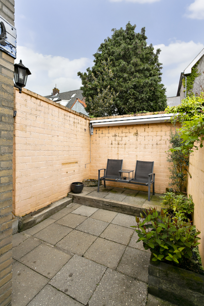 Achter de woning ligt een onderhoudsvriendelijke patio op het Noordoosten met sierbestrating en achterin een terras verhoging met een zonneluifel voor vele uurtjes buitenplezier. Verder is er een buitenkraan en zijn er plantenbakken.