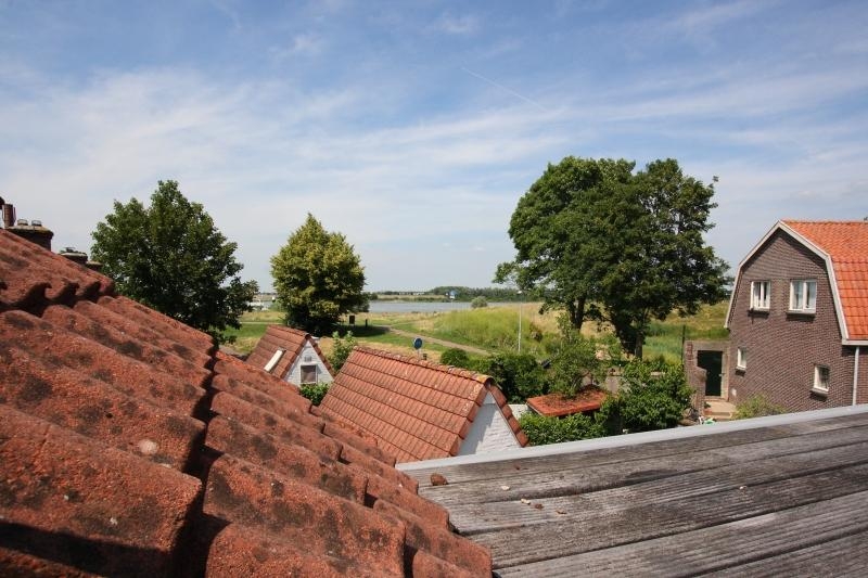 Op het platte dak van de 1e verdieping zijn houten vlonderplanken aangebracht. Vanuit het dakraam en vanaf het platte dak is er prachtig zicht op de rivier de Waal.