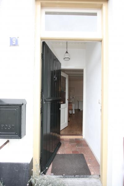De voordeur geeft toegang tot de hal met fraaie plavuizen.