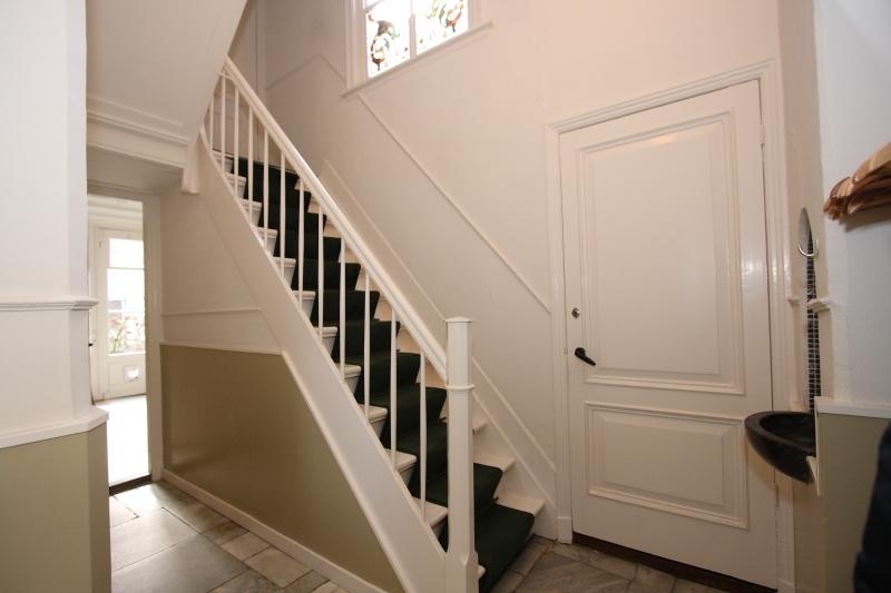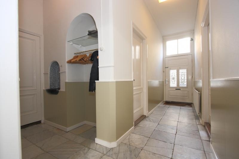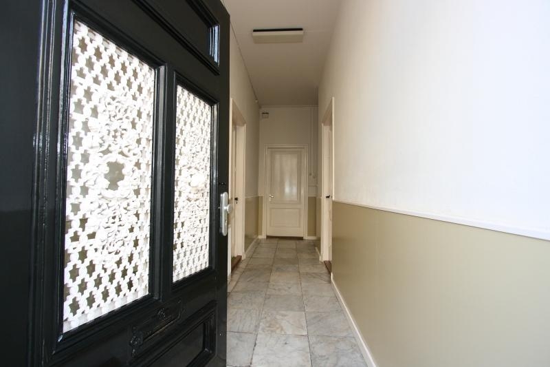 De statige entree van de woning ligt in het midden van de voorgevel aan de voorzijde. De prachtige authentieke voordeur met dubbel raam is voorzien van een gietijzeren deurrooster. De deur biedt toegang tot de gang met originele marmeren vloertegels. Vanuit de gang met garderobe, trapopgang, origineel fonteintje en toilet met fonteintje zijn 3 ruime kamers, de keuken en aansluitend de kelder te bereiken.