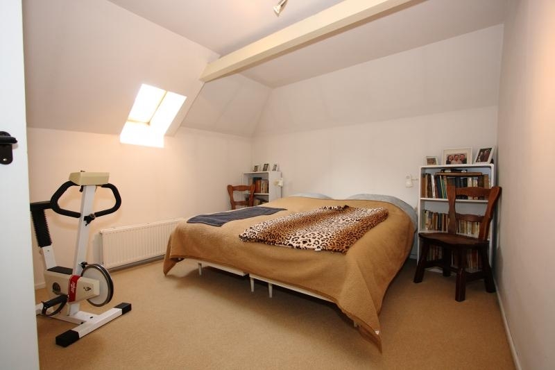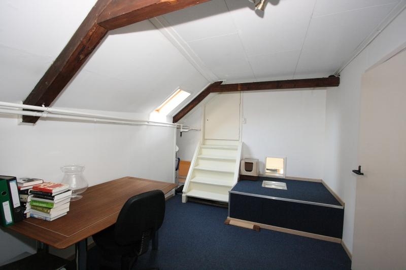 De studeerkamer geeft via een trapje toegang tot de grote zolder met geisoleerde kap, houten balken, vele hoekjes en veel bergruimte.
