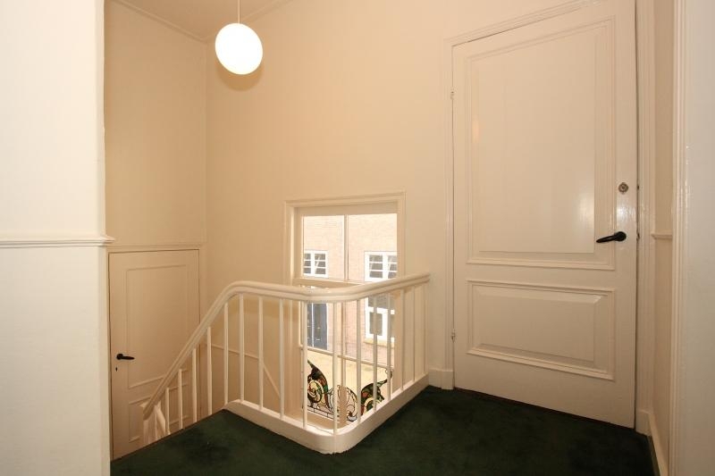 Via een prachtige bordestrap is de tussenkamer (nu in gebruik als archiefruimte) en vervolgens de 1e verdieping bereikbaar. Aan de voorzijde liggen 2 grote kamers met inbouwkasten en tevens met identieke "vensters met zesruitsschuiframen". Aan de overloop is een modern toilet met fonteintje en een authentiek zijraam.