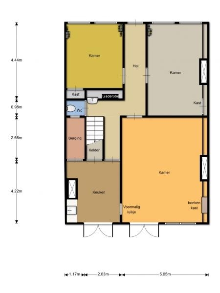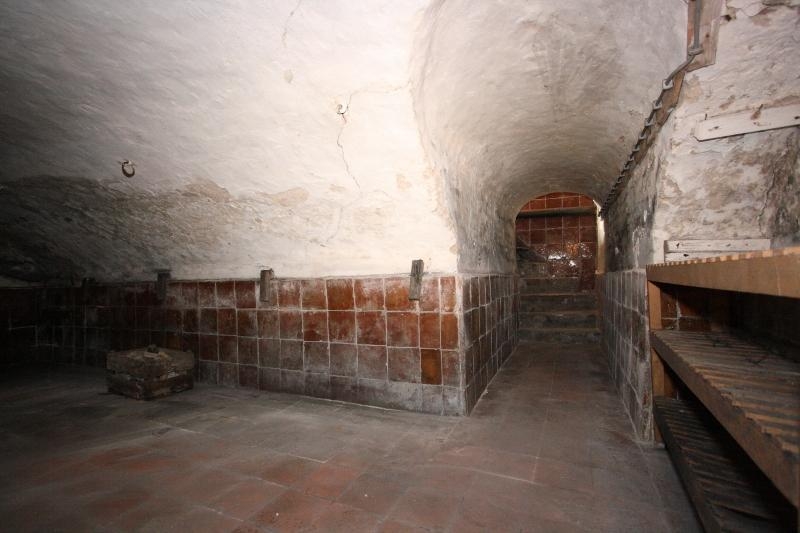 Aan de achterzijde ligt tevens de keuken met openslaande deuren en met een deur naar een bergkast en een deur naar de authentieke boogkelder. Deze oude boogkelder met plavuizen op de vloer is toegankelijk via een trap en gang en meet 19,5 m2; waarbij het hoogste punt in de kelder 1,79 m. is. Aan de buitengevel is een venster met rooster.