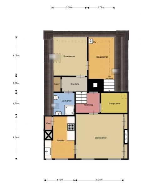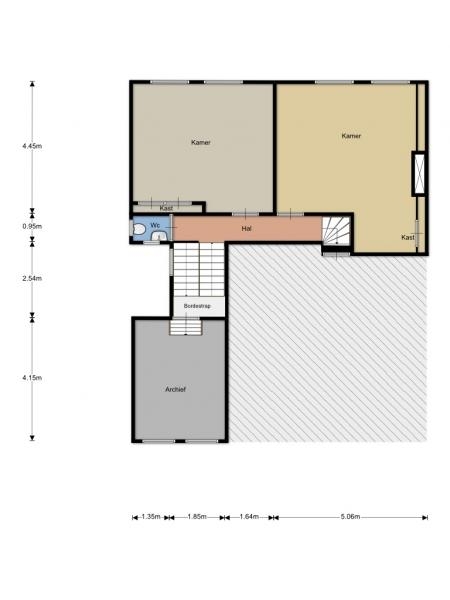 Aan de voorzijde liggen de huidige ouderslaapkamer en een (studeer) kamer met de Nefit CV HR ketel en toegang tot de zolderverdieping.