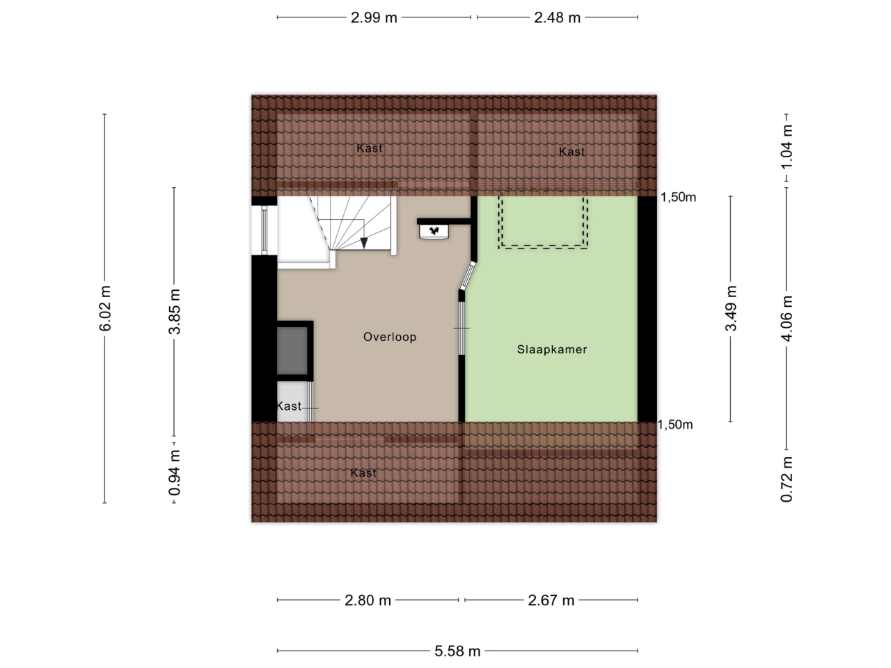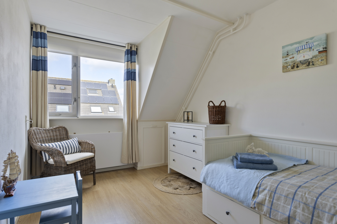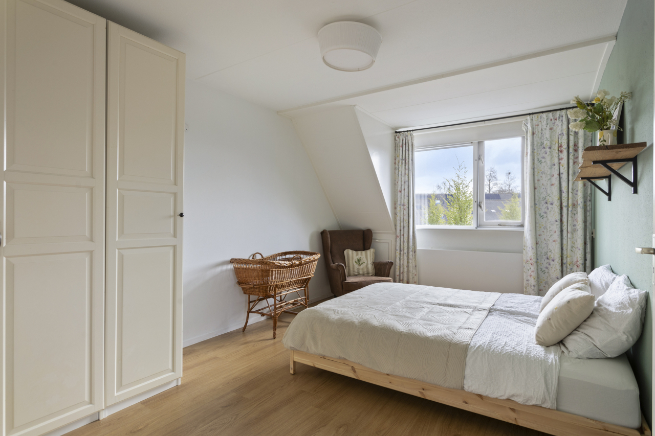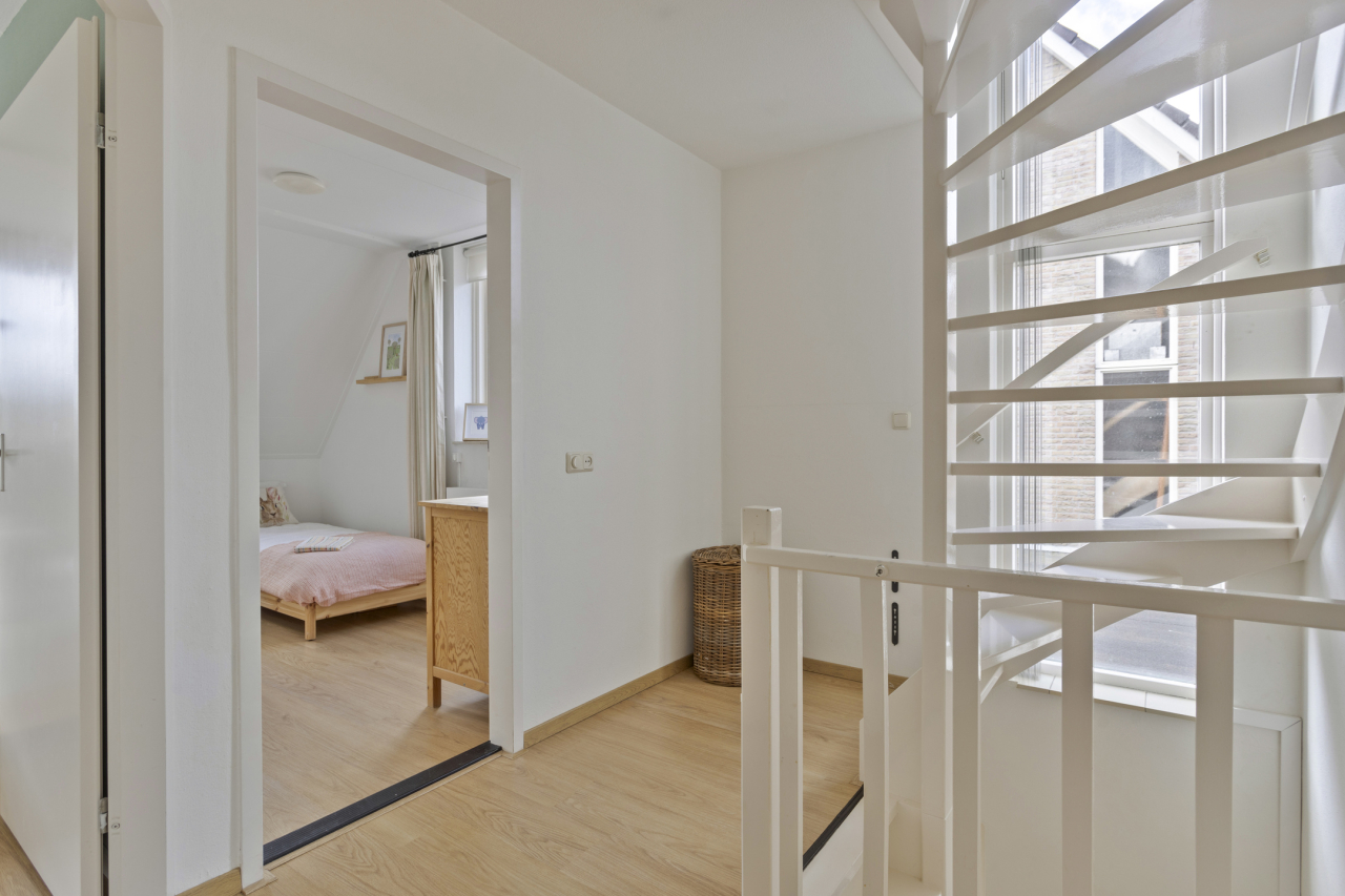 Op de 2e verdieping is de 4e slaapkamer met bergvliering, groot Veluxraam en knieschotten. Verder de voorzolder met inbouwkast, knieschotten en de Remeha Elga Ace hybride warmtepomp (2022), Intergas CV HR (2021) combiketel. Mechanische ventilatie unit en omvormers (2 x) van in totaal 22 zonnepanelen (2022).