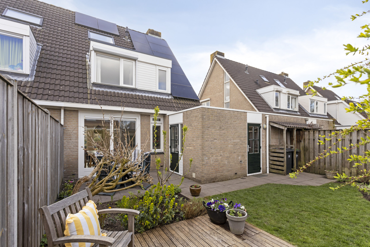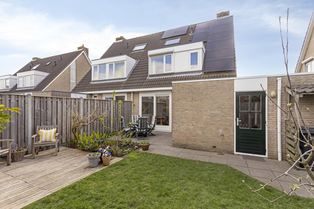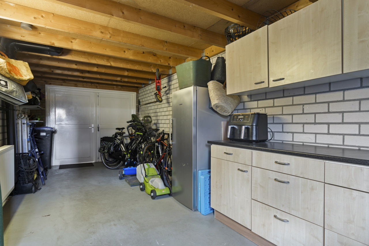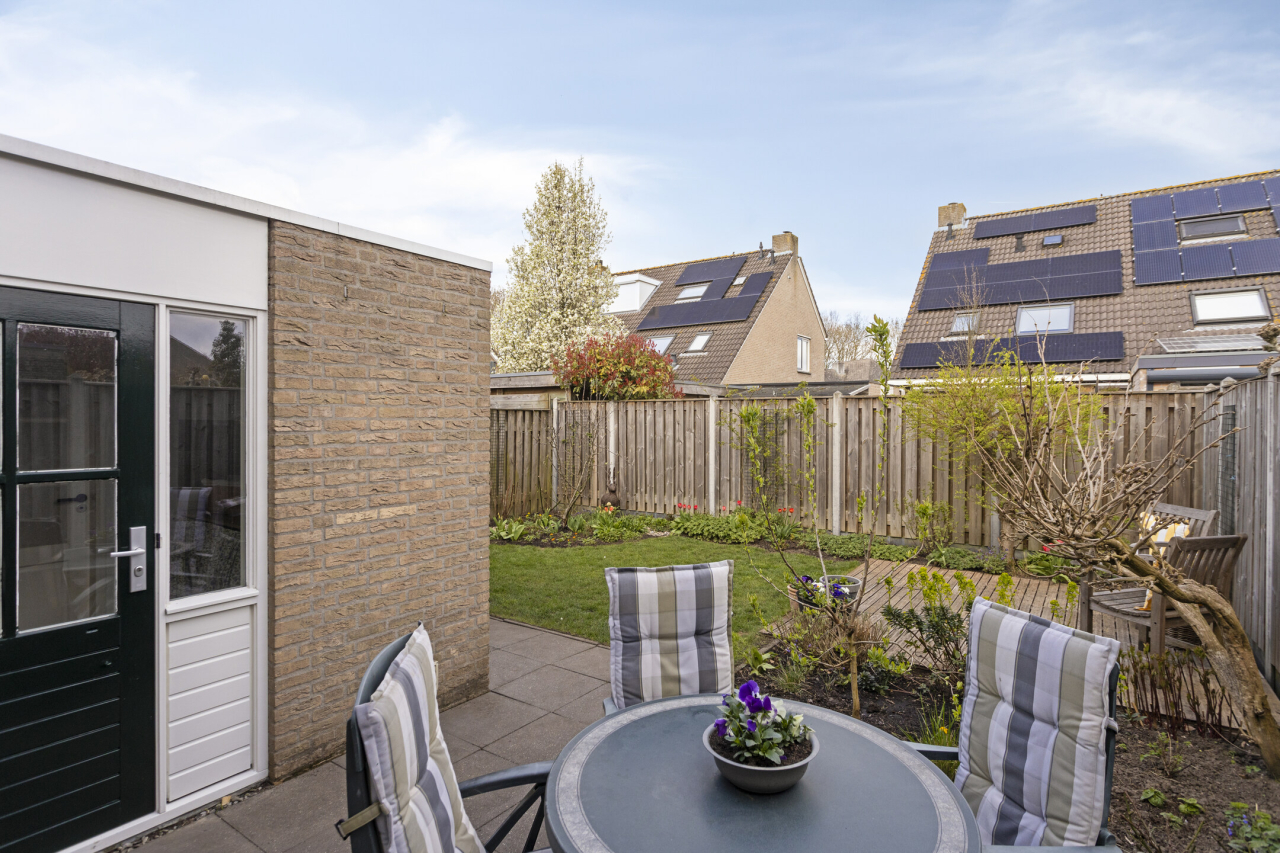 Achter de woning ligt een fraaie en zonnige tuin. De tuin is voorzien van 2 terrassen, sierbestrating, een gazon en diverse borders met beplanting en struiken. Er is daardoor altijd wel een zonnig plekje te vinden. De garage naast de woning met loopdeur aan de achterzijde is inpandig bereikbaar via de bijkeuken en is voorzien van een dubbele deur aan de voorzijde met oplaadpaal bij de oprit.