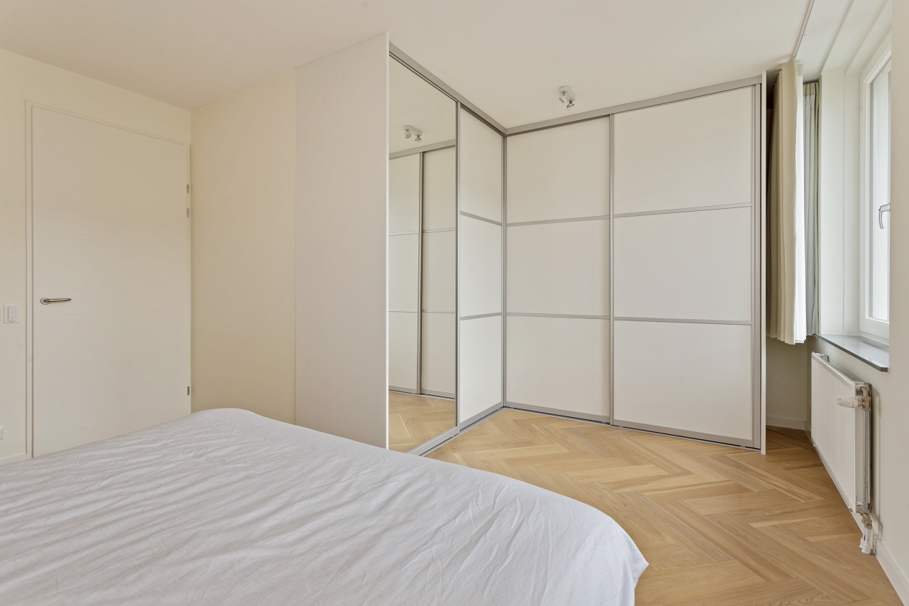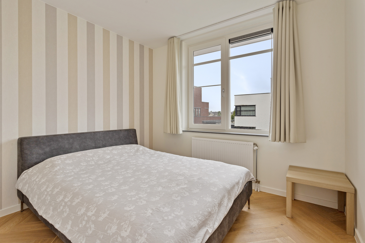 De grote, L-vormige ouderslaapkamer aan de achterzijde is is voorzien van een grote kastenwand en kijkt uit op de achtertuin.