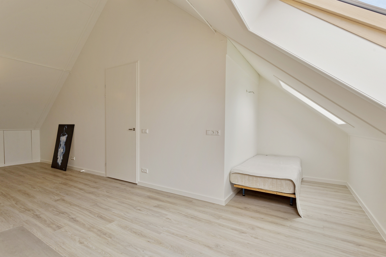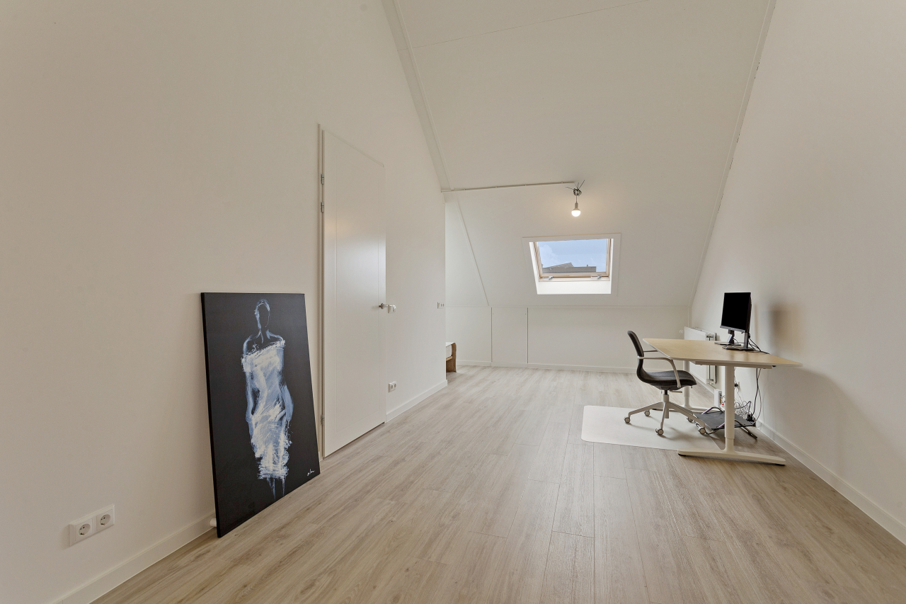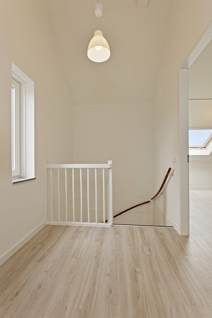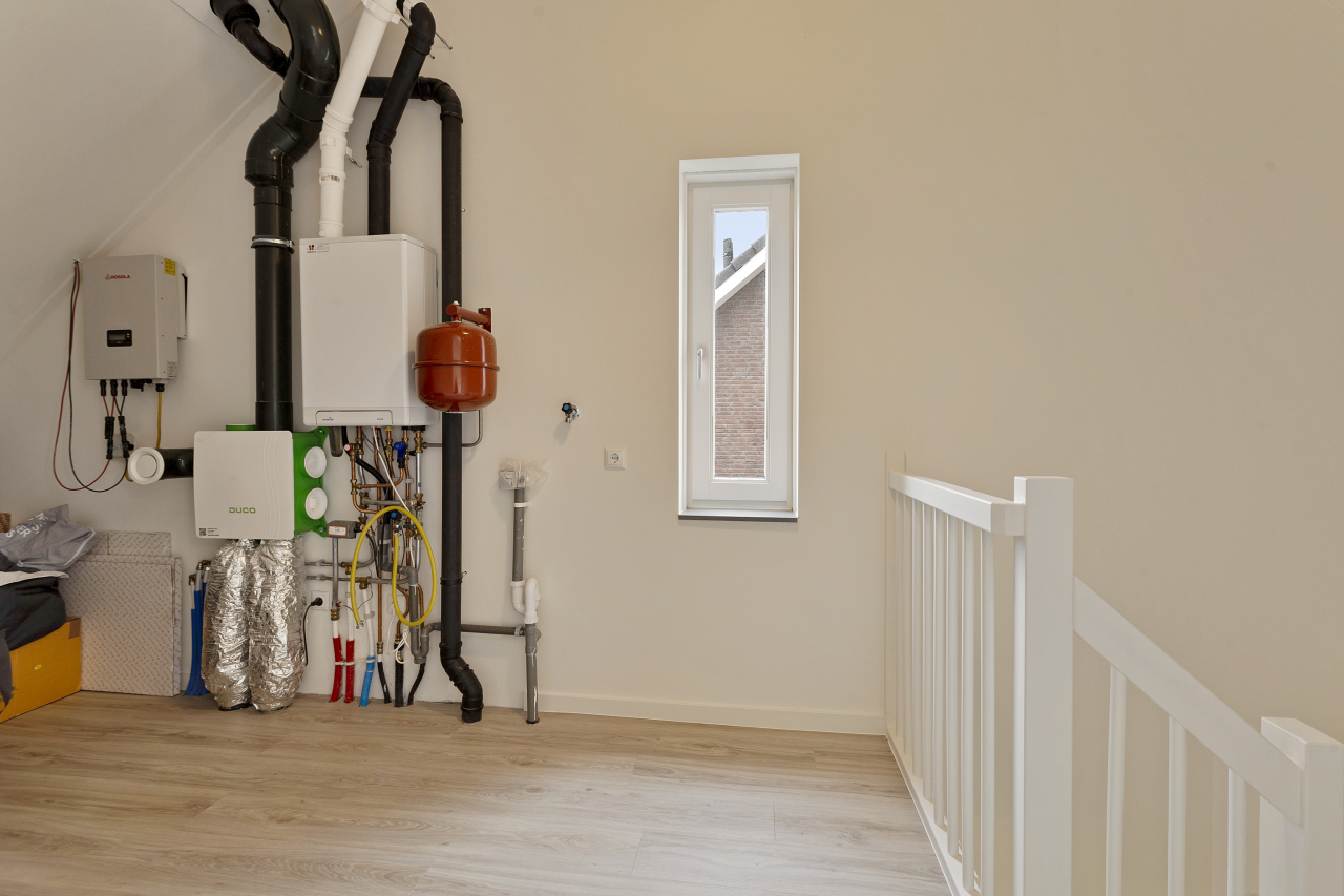 Via een vaste trap is de 2e verdieping bereikbaar. De royale overloop biedt toegang tot de 4e slaapkamer, beiden met een lichte PVC vloer en hoog plafond. Aan de voorzijde van de slaapkamer zijn 2 grote dakramen. Op de voorzolder bevindt zich de Intergas CV HR ketel, mechanische ventilatie unit en omvormer van de 12 zonnepanelen op het dak.
