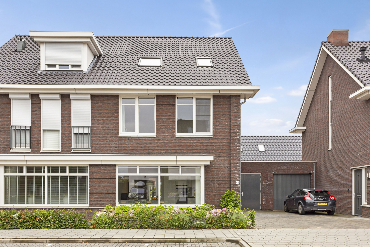 De entree is aan de zijkant van de woning. De naast gelegen garage, is van binnenuit toegankelijk en aan de voorzijde via een dubbele deur en aan de achterzijde via een tuindeur.