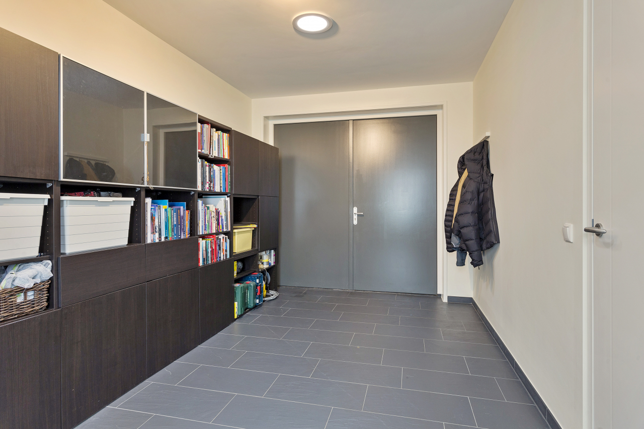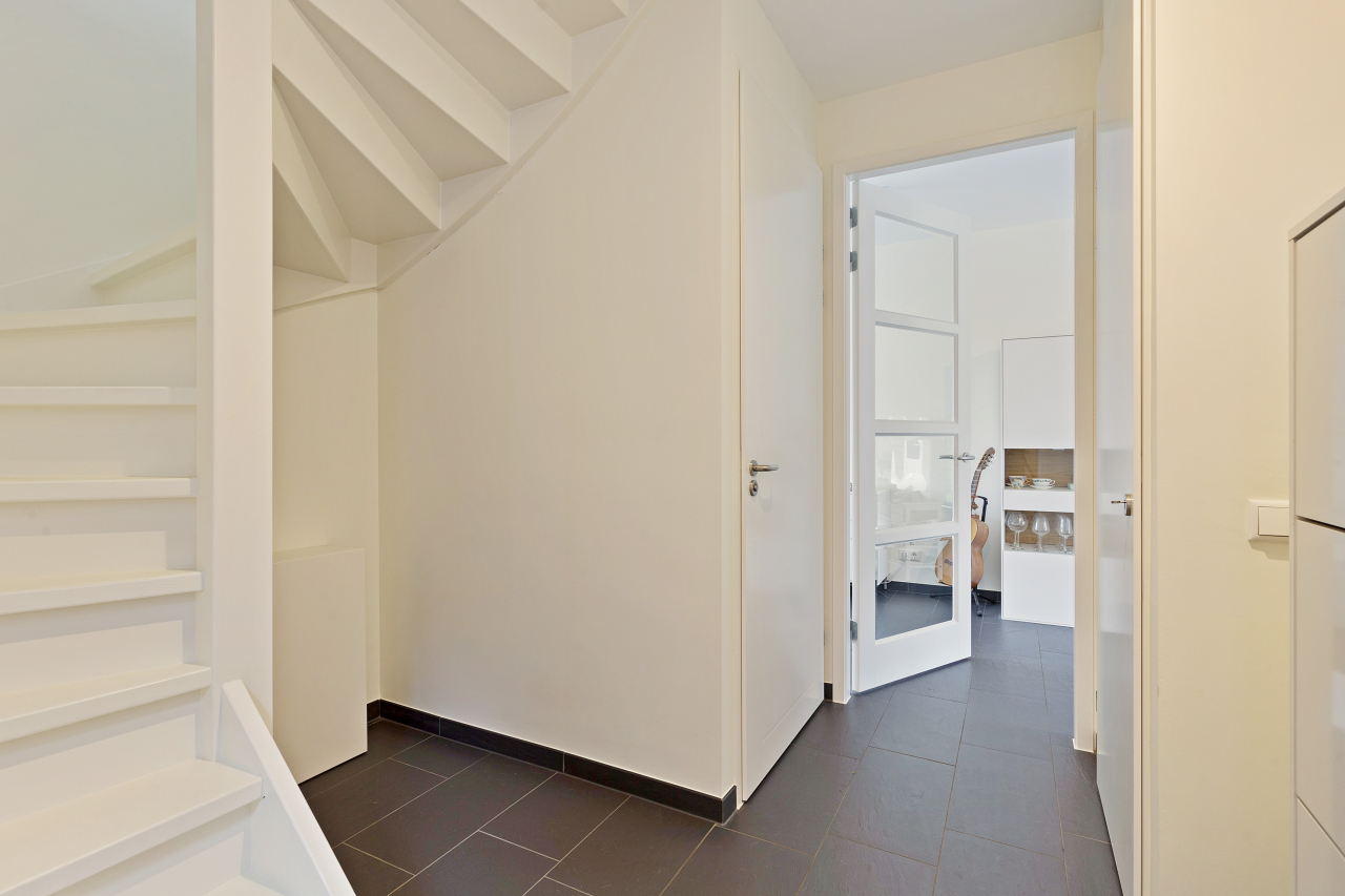 Vanuit de ruime hal met trapopgang, garderobe, meterkast, modern toilet met fonteintje, bereikt u de woonkamer.
