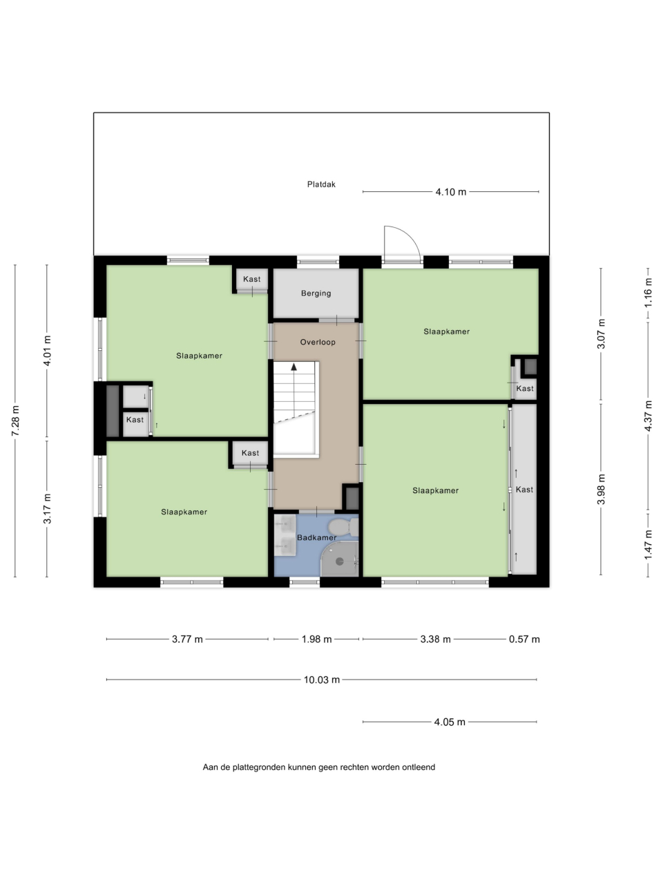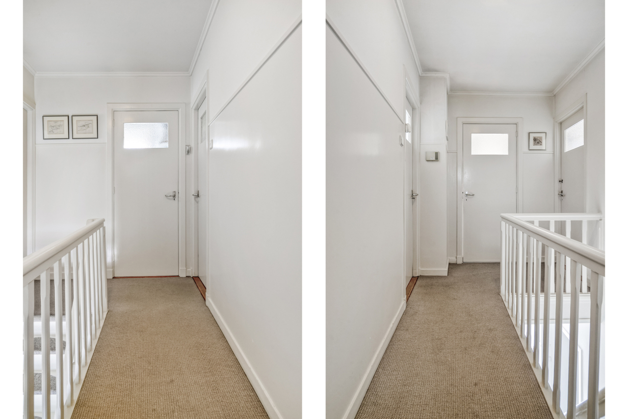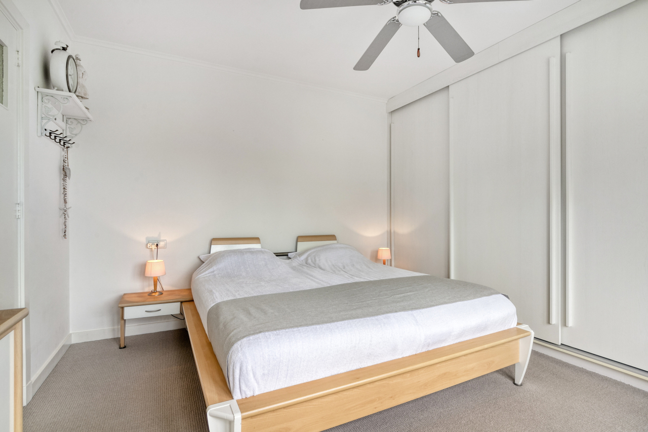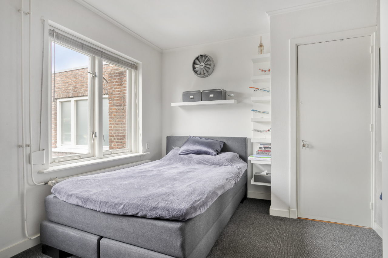 Via de houten trap in de hal is de overloop op de 1e verdieping bereikbaar. Aan de overloop liggen 4 ruime slaapkamers, een berging en de badkamer. De gehele verdieping is voorzien van lichte vloerbedekking. De royale ouderslaapkamer heeft grote ramen aan de voorzijde en zicht op het groene plein. De kamer is voorzien van een grote inbouwkast met 4 schuifdeuren. De 2e slaapkamer is op dit moment in gebruik als werkkamer en ook voorzien van diverse ramen en een inbouwkast. De 3e slaapkamer ligt aan de achterzijde en heeft een deur naar het platte dak en tevens een inbouwkast.