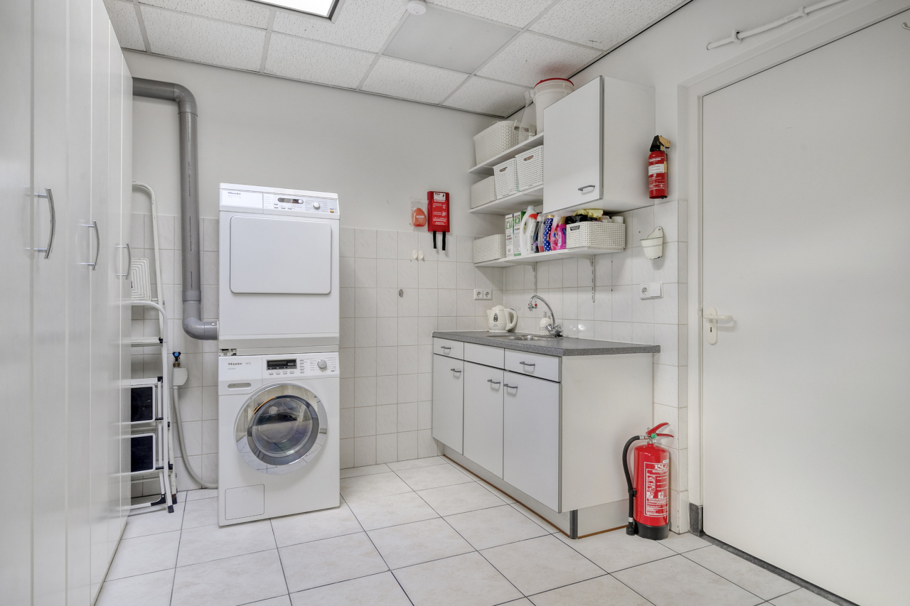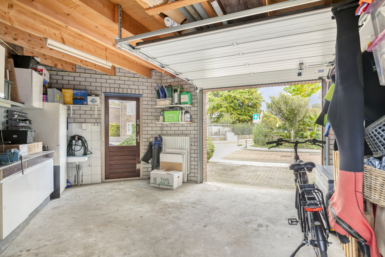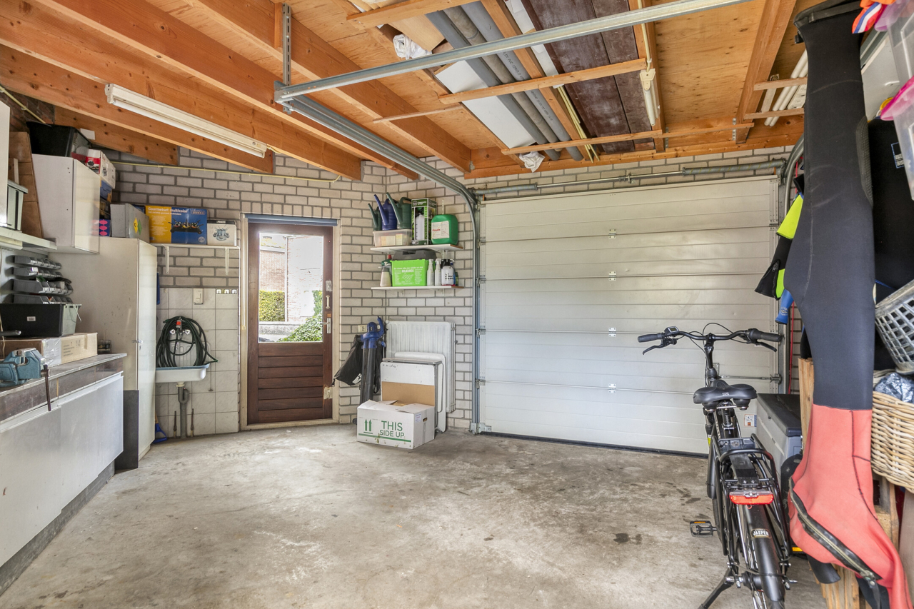 De garage met verwarming, keukenblok, stortbak en een loopdeur aan de voor- en achterzijde is bijzonder ruim. Voor de sectionaal deur aan de straatkant is een eigen oprit. Een fijne woning met veel mogelijkheden.