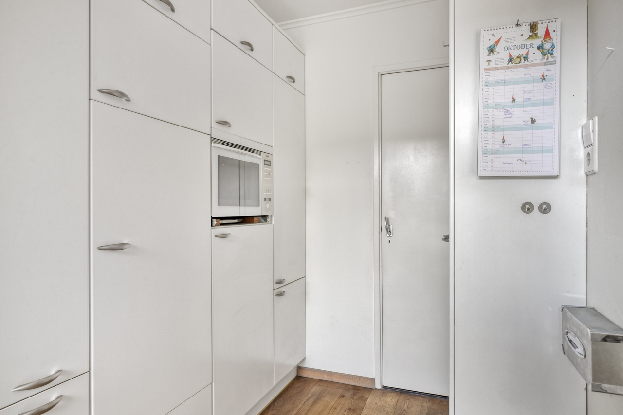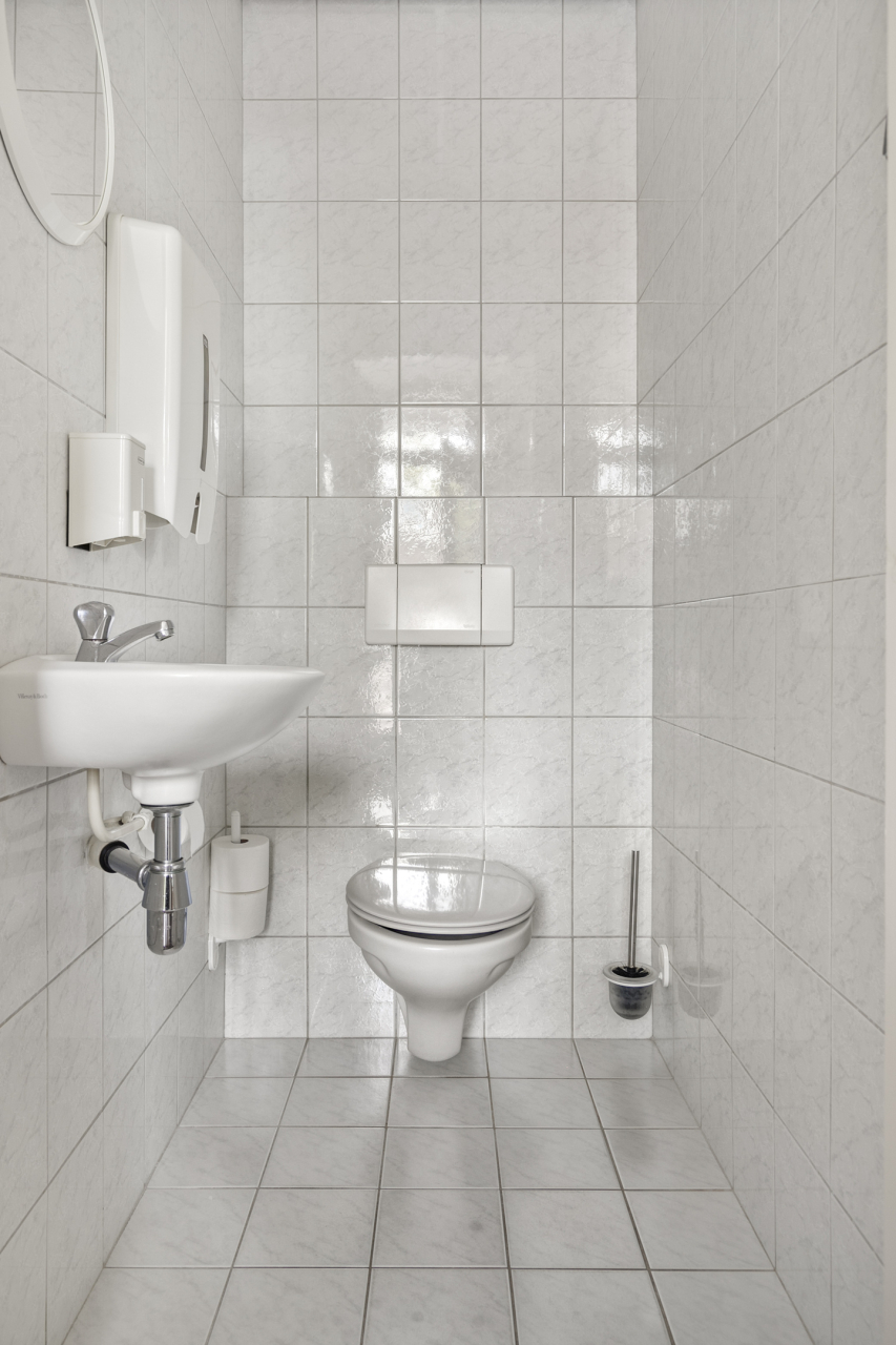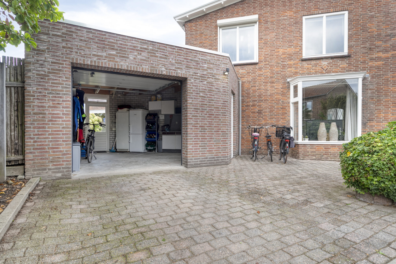 De garage met verwarming, keukenblok, stortbak en een loopdeur aan de voor- en achterzijde is bijzonder ruim. Voor de sectionaal deur aan de straatkant is een eigen oprit. Een fijne woning met veel mogelijkheden.
