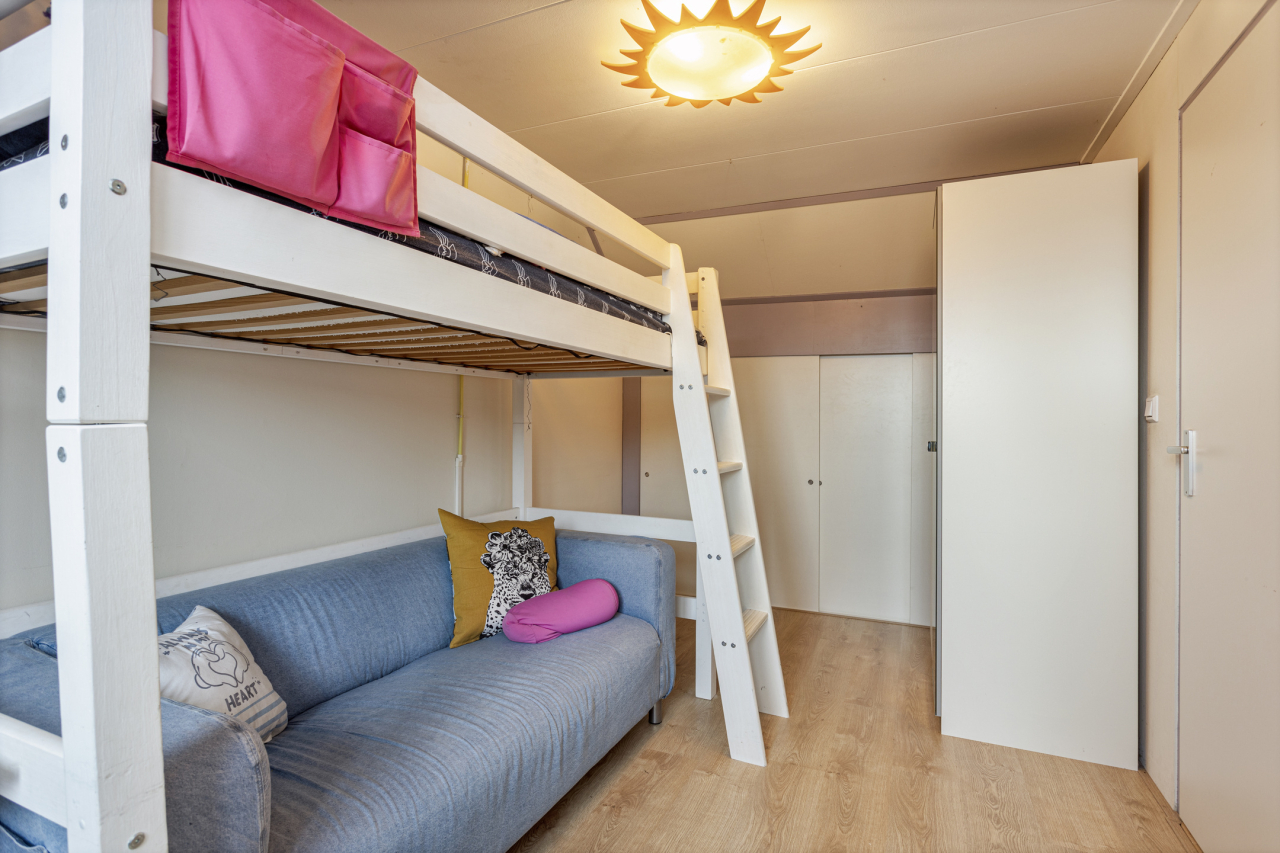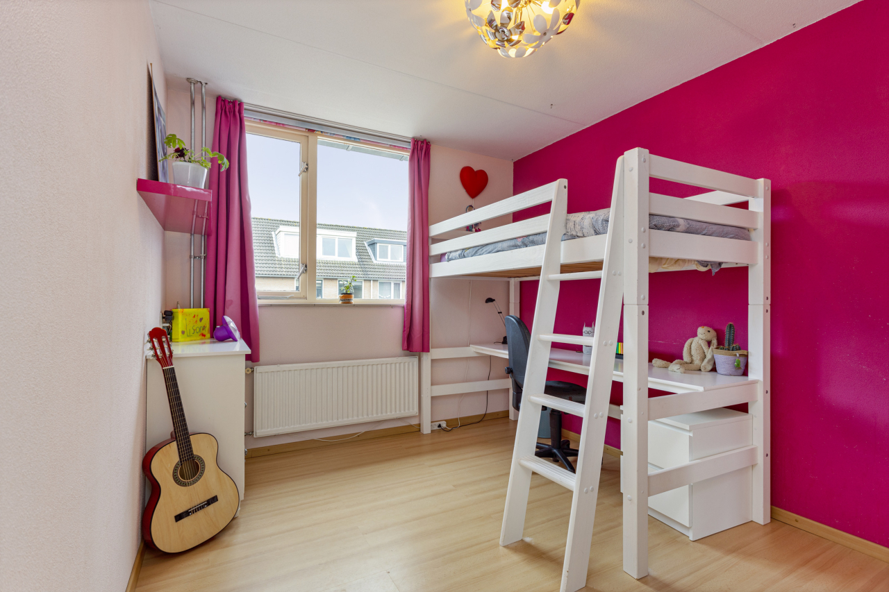 Aan de achterzijde liggen 2 slaapkamers voorzien van een lichte laminaatvloer. De ouderslaapkamer aan de voorzijde is voorzien van een grote inbouwkast met schuifdeuren, een extra wastafel en een lichte laminaatvloer zoals de gehele verdieping.