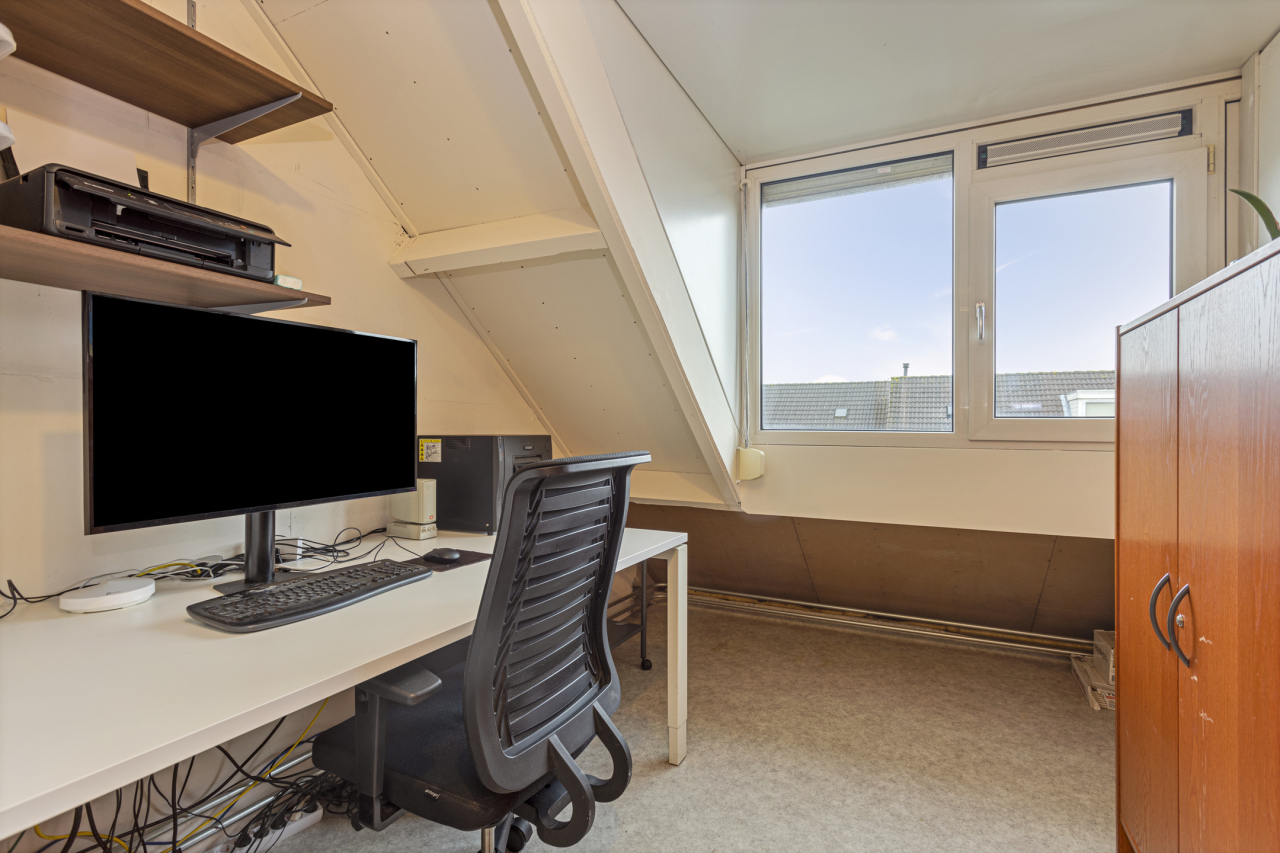 Via een vaste trap is de 2e verdieping bereikbaar met een werkkamer en grote slaapkamer beiden met een kunststof dakkapel. Verder met een voorzolder met de witgoed-aansluitingen, de nieuwe Atag CV HR combiketel (2023), mechanische ventilatie unit en de omvormer van de zonnepanelen(2023).
